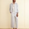 This jacket is inspired by an Austrian straw hat, circa 1930s. The hat brim was embroidered with this twining wildflower-and-vine pattern. We reproduced the floral embroidery along the pockets, placket, and cuffs of this piece. The embroidery is worked in colorful yarn and metallic bullion braid, with silver sequins studded throughout.