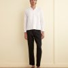 This style is inspired by an antique shirt, c.1920s-1930s. Sailor collars like this one were common throughout early sportswear. We reproduced the original piece, with its sailor collar and front welt pocket, in natural-toned cotton with green accents. The collar is trimmed with woven white trim and embroidered clover.