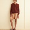 These shorts are inspired by a striped costume hat from the early 20th century. We reproduced the pattern and hand-beaded lettering for this style. The shorts feature a beaded “Bode” on the front left hem.
