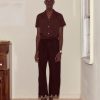 This style is inspired by a pair of canvas trousers from the 1940s-1950s. We reproduced the silhouette with a red grosgrain stripe down the side seam and horse and skunk patches on the back.
