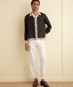 BODE Men’s Ready To Wear Lightweight Linen Double-breasted Suit Jacket – Brown/black | Brown & Black