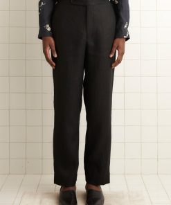 BODE Men’s Ready To Wear Lightweight Linen Double-breasted Suit Jacket – Brown/black | Brown & Black