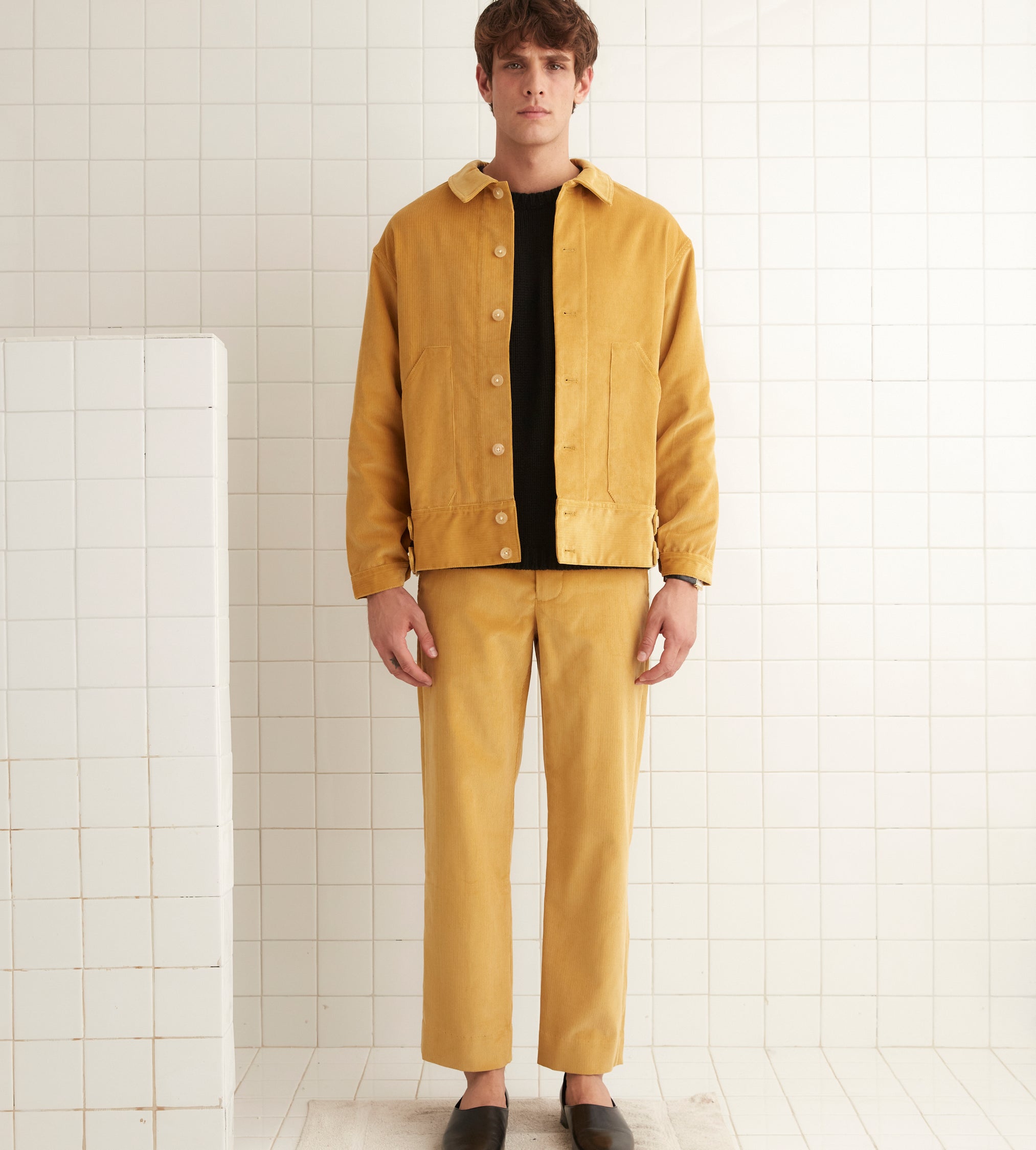 Our custom Senior Cord jackets are made from corn-colored British corduroy with hand-drawn illustrations in black or full-color. This technique is inspired by an early 20th-century collegiate tradition in which seniors illustrated their corduroys with personal motifs. Once purchased, we will email with a questionnaire and set up a phone call with our studio team to customize your jacket. Please allow 10-12 weeks from the time of your interview to complete the order.