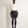 These shorts are made from deadstock wool, purchased from a tailor in Buffalo, NY, who closed his shop in the 1970s. He imported all of his materials from the UK and Italy, and many of the fabrics came from Savile Row wool suppliers. They had been sitting in his storage unit until we purchased them sixty years later.