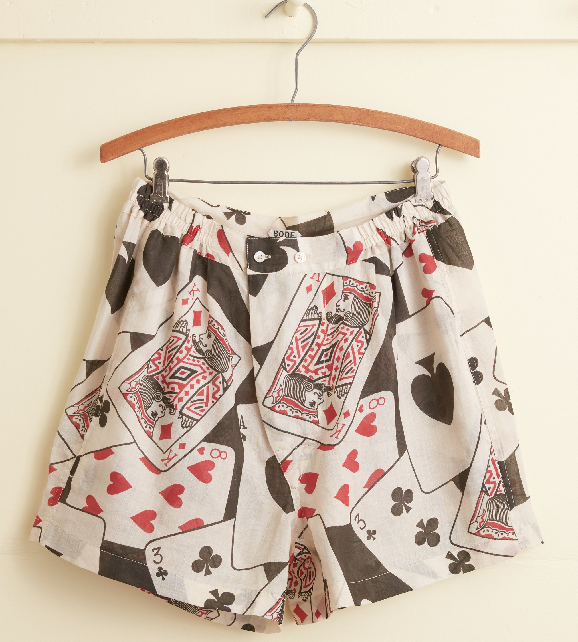 These boxers are inspired by a costume from the 1920s, which featured this all-over card motif. We recreated the pattern for this style.