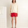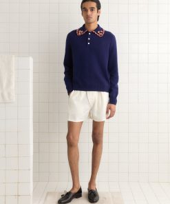 This style is a recreation of a sweater from the 1970s. We reproduced the silhouette, with its lace-up neckline, for this style.
