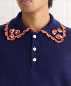 This style is a recreation of a sweater from the 1970s. We reproduced the silhouette, with its lace-up neckline, for this style.