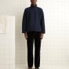 This jacket is inspired by an Austrian straw hat, circa 1930s. The hat brim was embroidered with this twining wildflower-and-vine pattern. We reproduced the floral embroidery along the pockets, placket, and cuffs of this piece. The embroidery is worked in colorful yarn and metallic bullion braid, with silver sequins studded throughout.