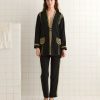 These trousers are inspired by an embroidered tablecloth from the 1950s. We reproduced the floral patterns in colorful beadwork down the side seam and around the hem. The trousers have a mid-rise and a straight leg.