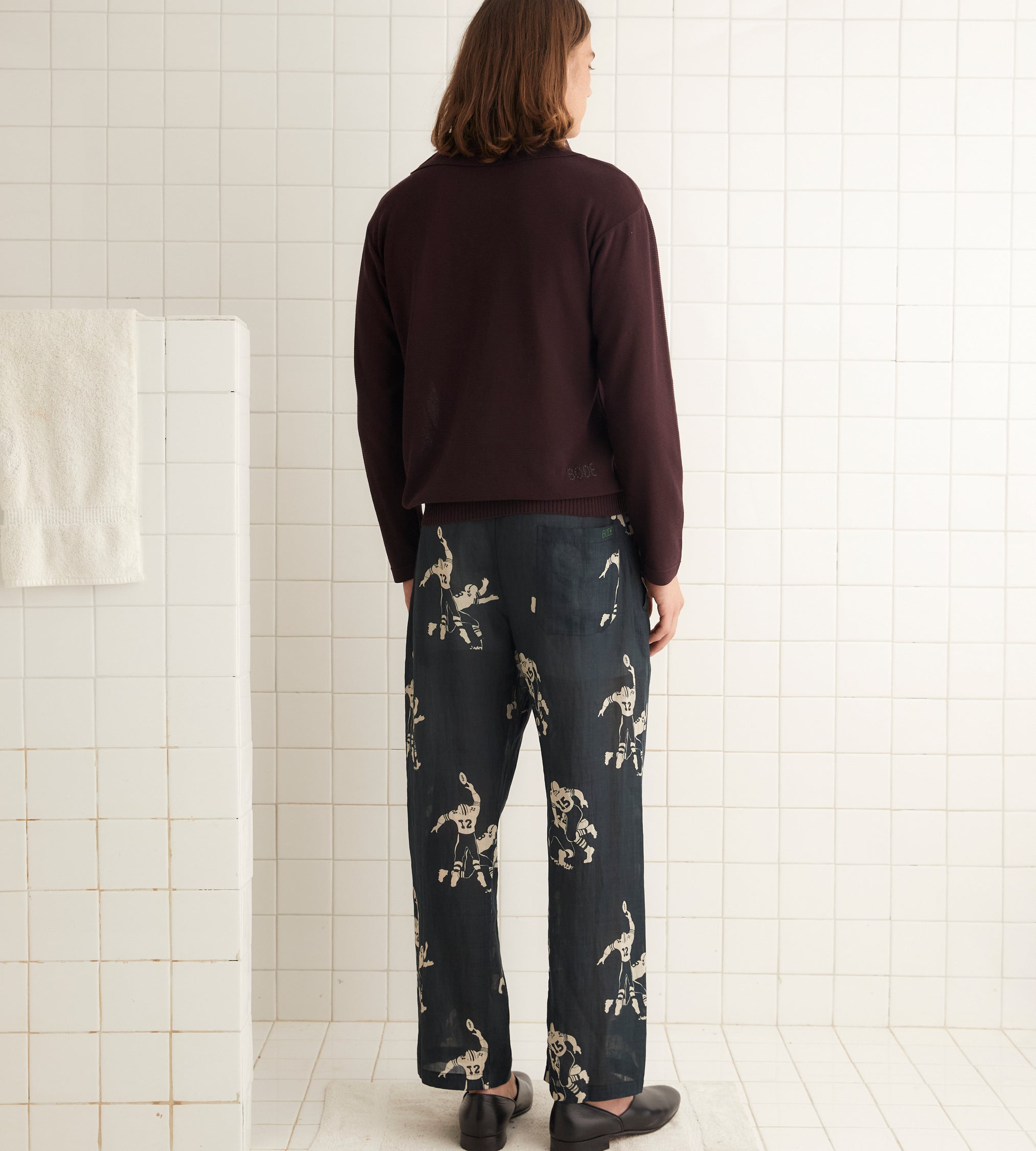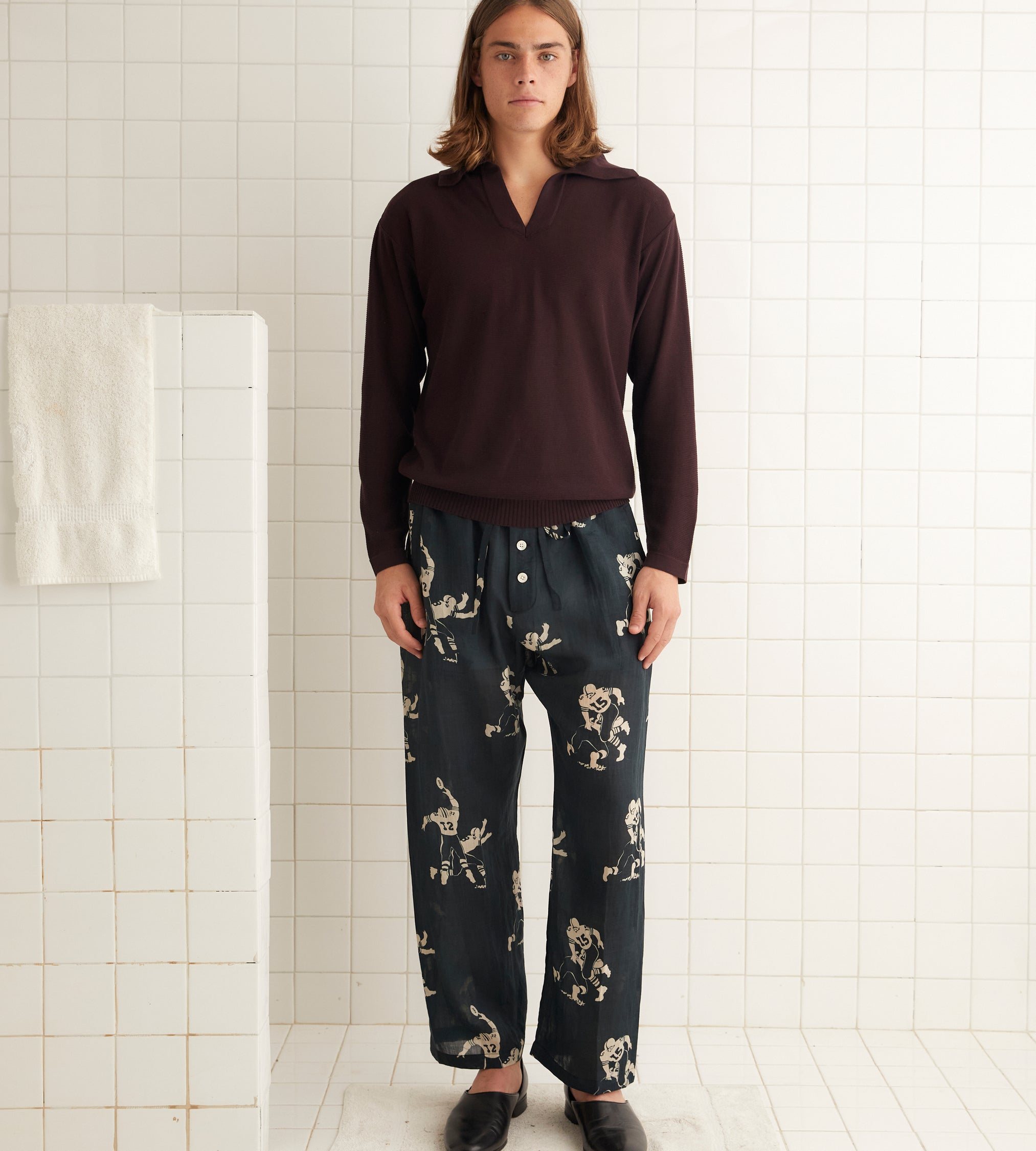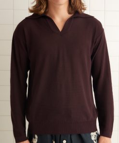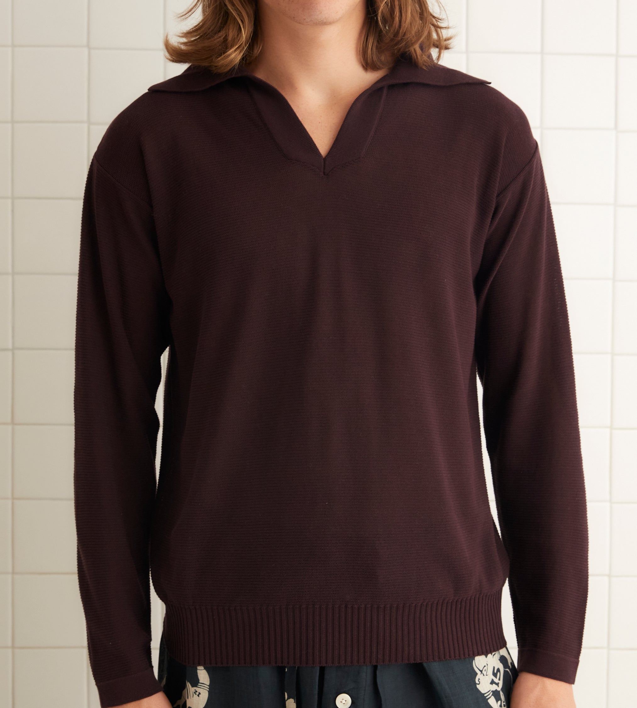 This piece is inspired by a polo from the 1970s. We imitated the boxy silhouette of the original for this shirt, which is knit from a light crepe yarn.