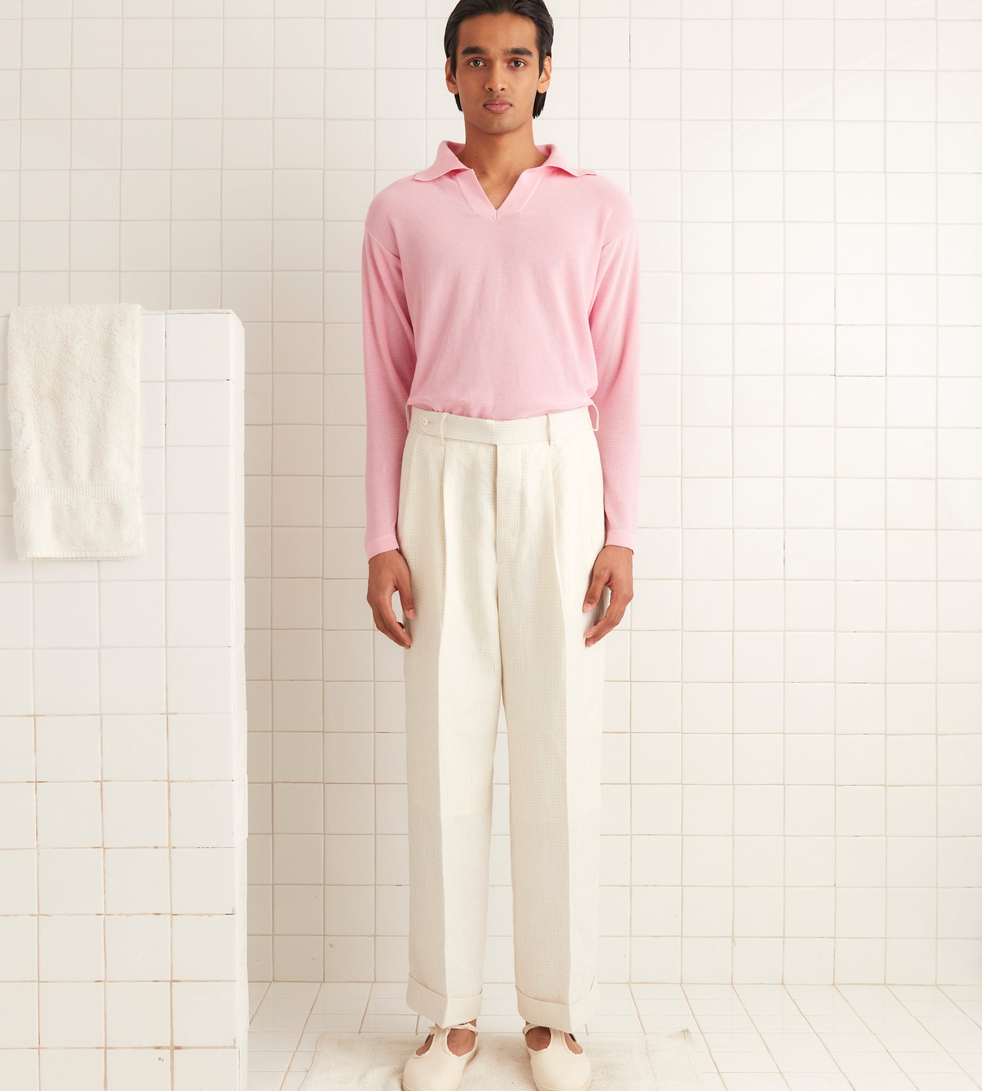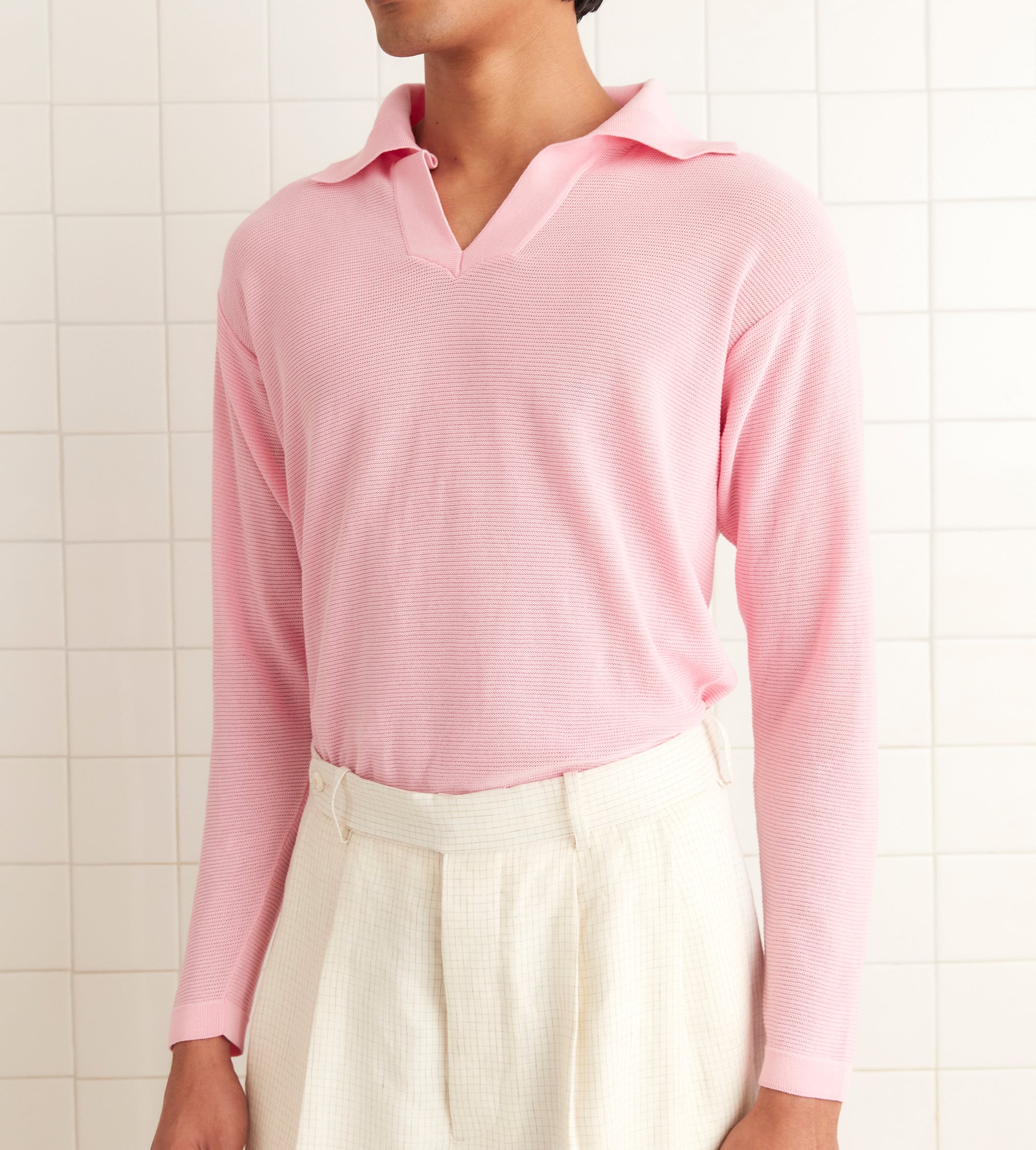 BODE Men’s Ready To Wear Boxy Long Sleeve Polo – Pink | Pink