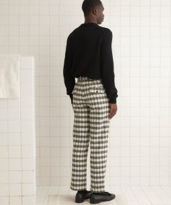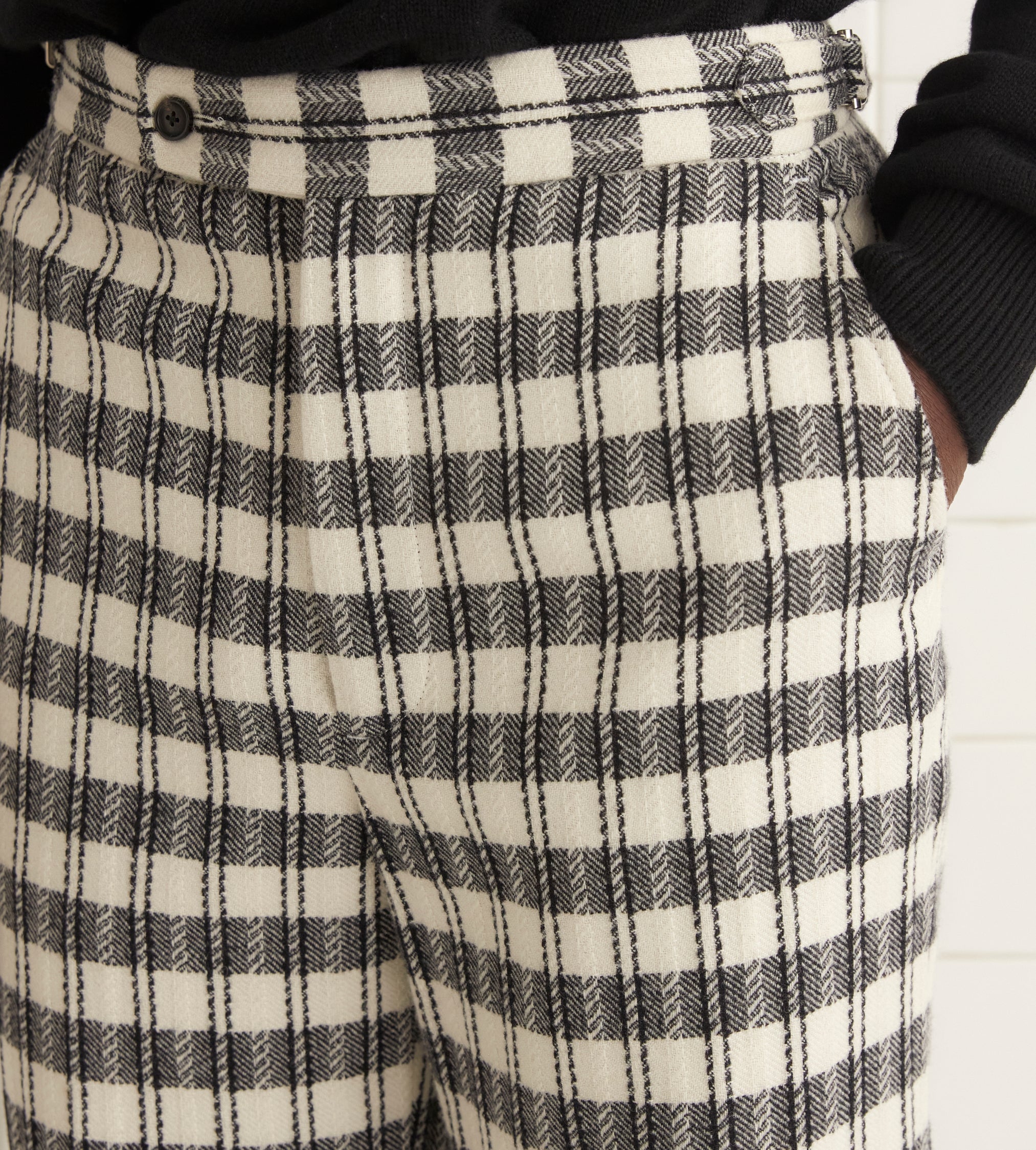 These trousers are inspired by midcentury suiting. Made from a herringbone twill check, they have a mid-rise and a straight leg.