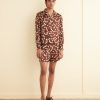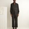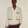 This tunic is inspired by an antique blouse, circa 1910. We reproduced the delicate cherry blossom beading and the appliquéd black stripes for this style. The tunic has a contrast collar and cuffs and a stepped hem.