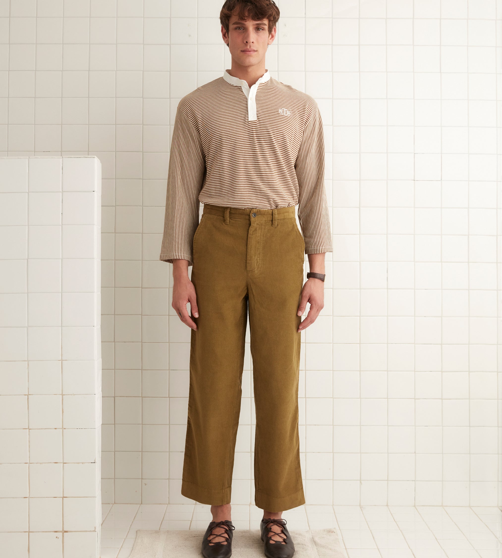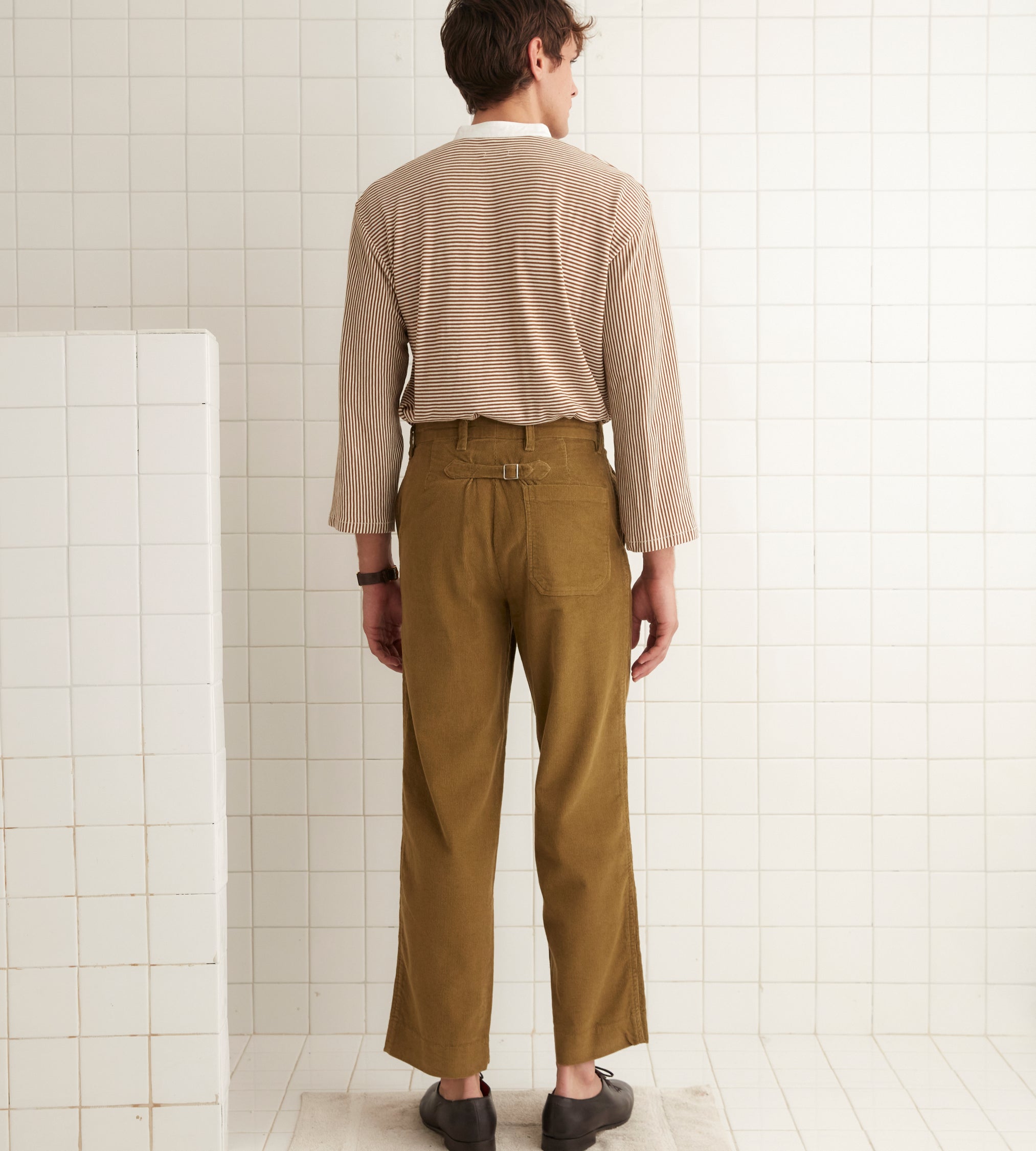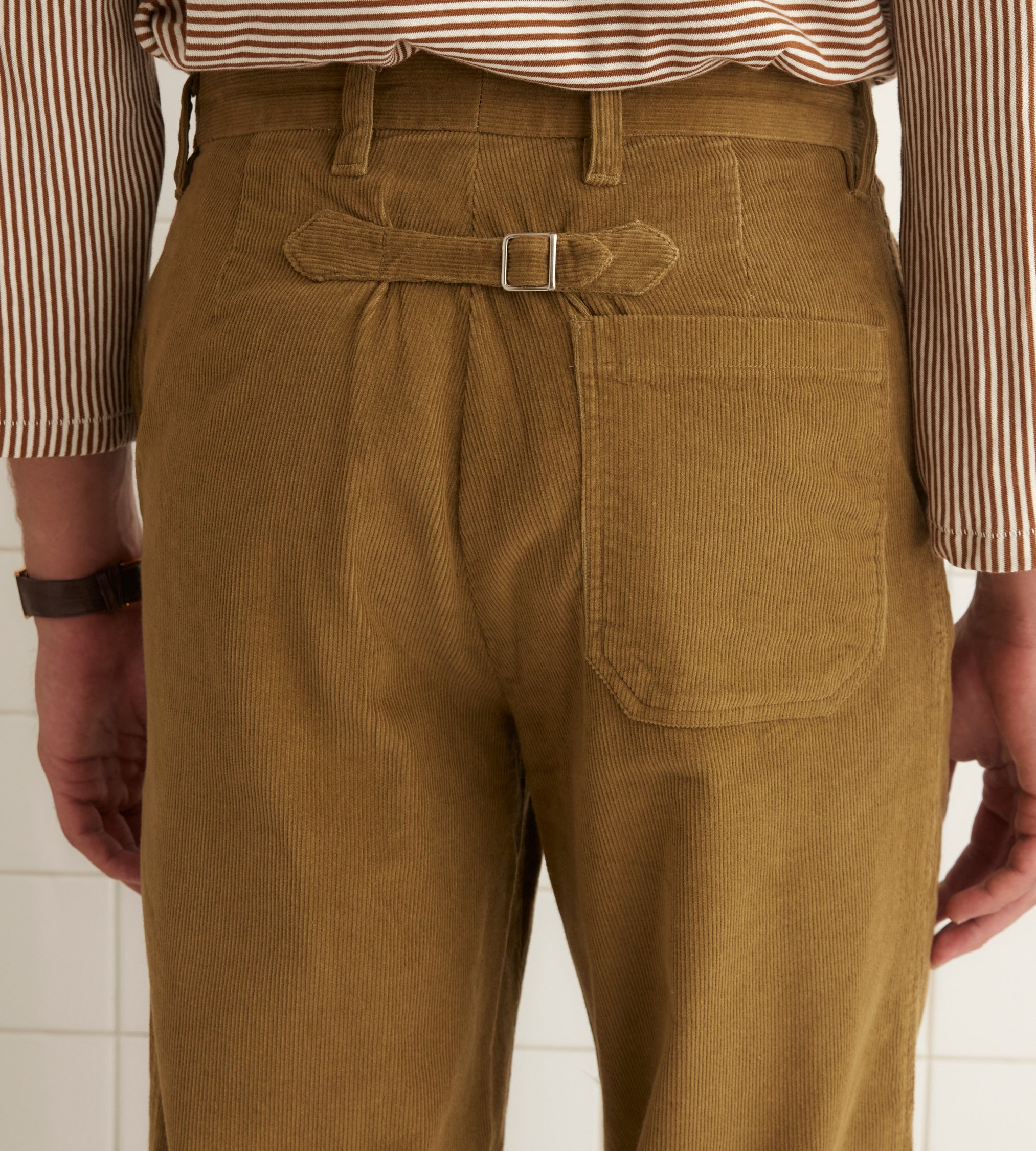 These trousers are inspired by French workwear trousers, circa 1940s. We reproduced the high-rise, straight-leg silhouette for this style. The trousers are made from midweight corduroy.