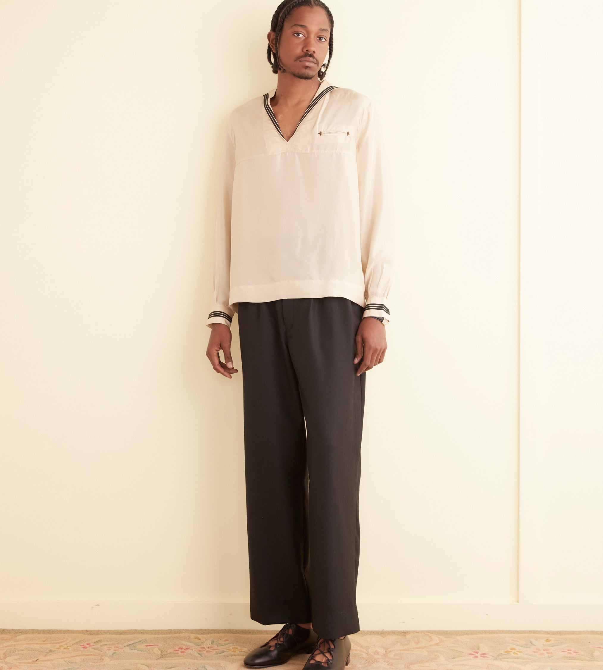BODE Men’s Ready To Wear Cricket Shirt – Ecru/navy | Ecru