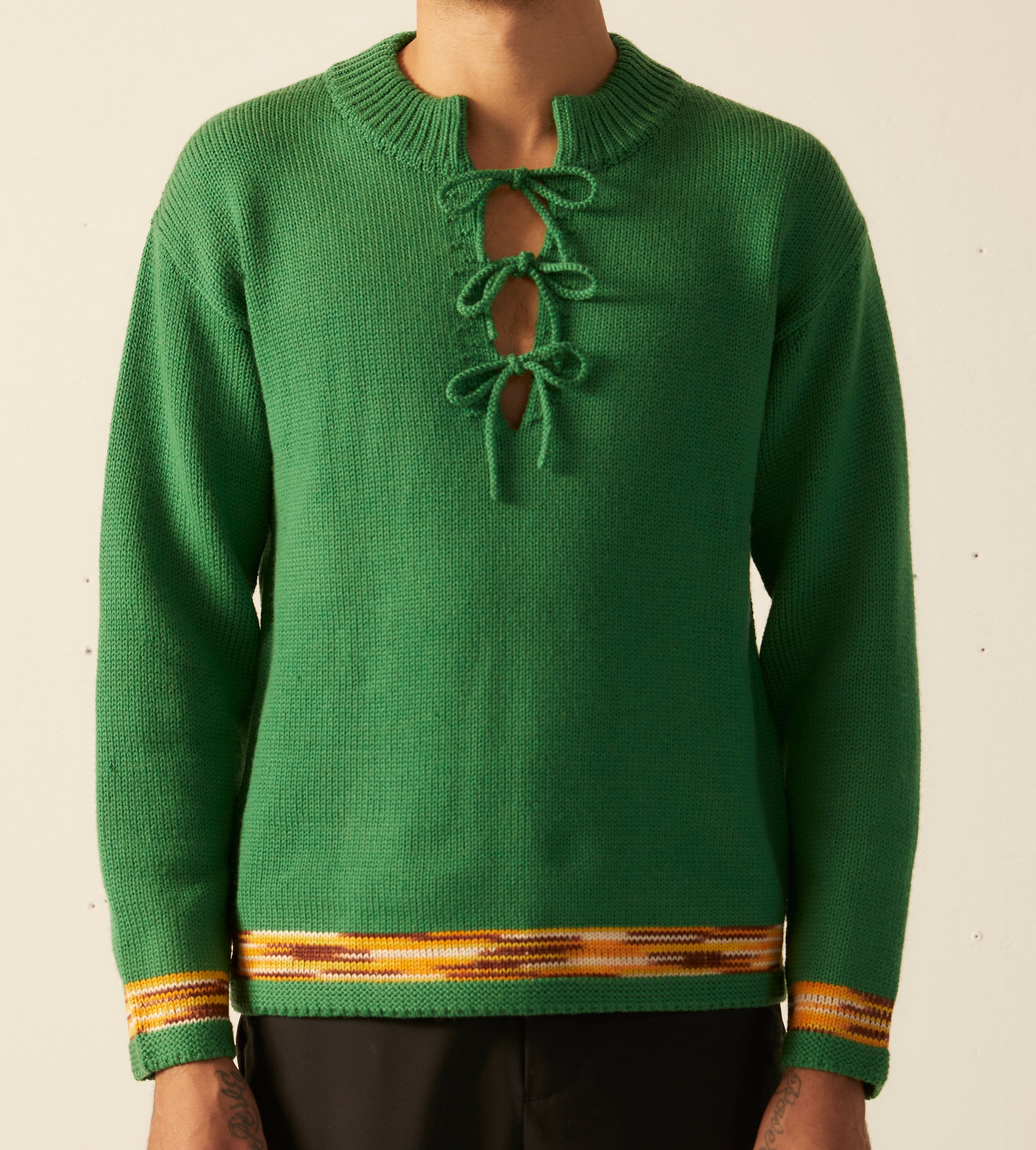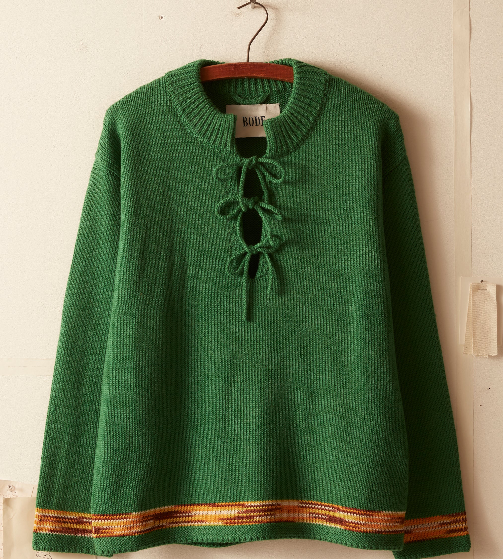 This pullover is inspired by children’s mittens, circa 1930s. The trim design is taken from a pair of homemade children’s mittens cuffs.