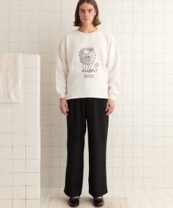 This crewneck is inspired by a children’s souvenir T-shirt from the 1970s. We reproduced the lion motif in rhinestones.