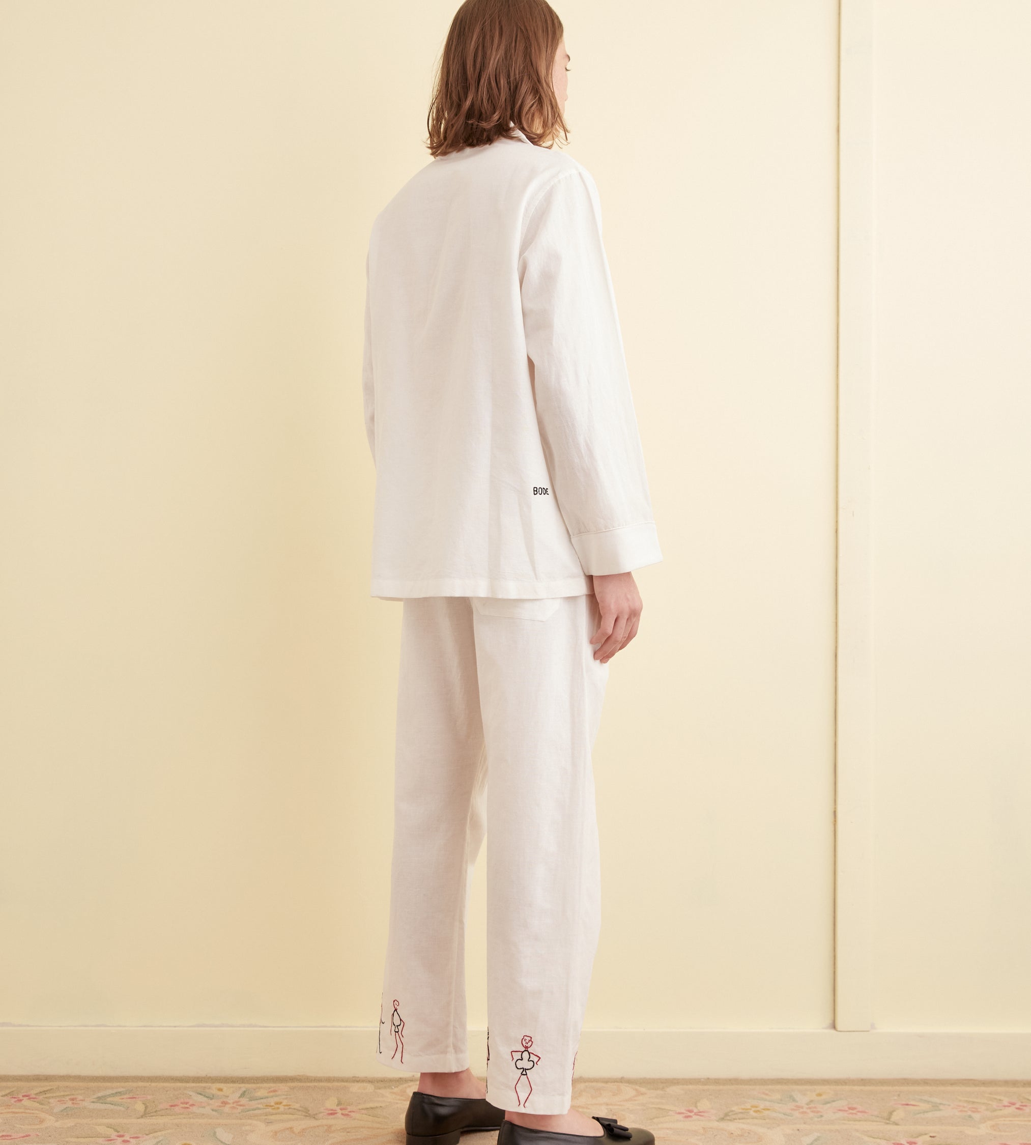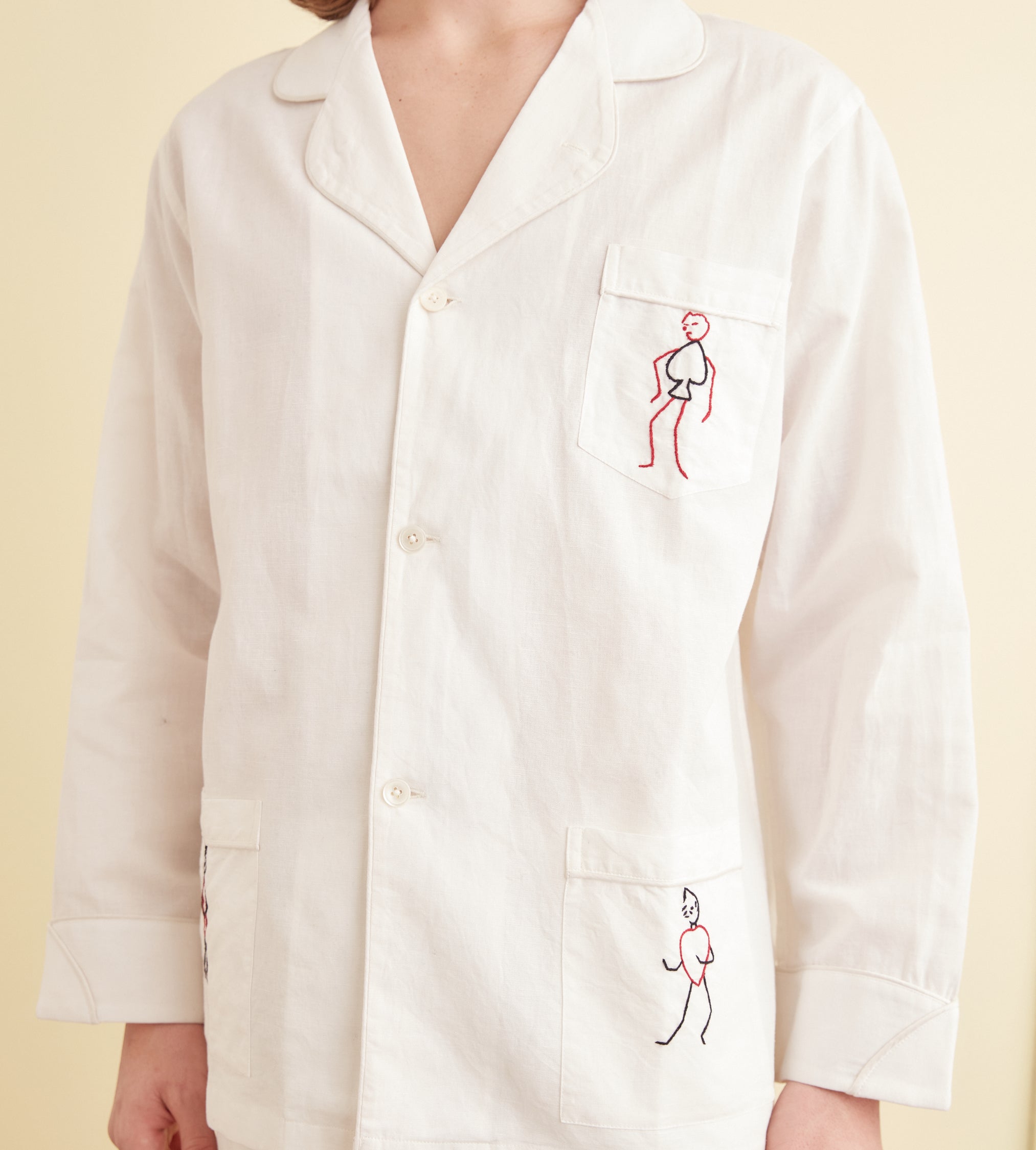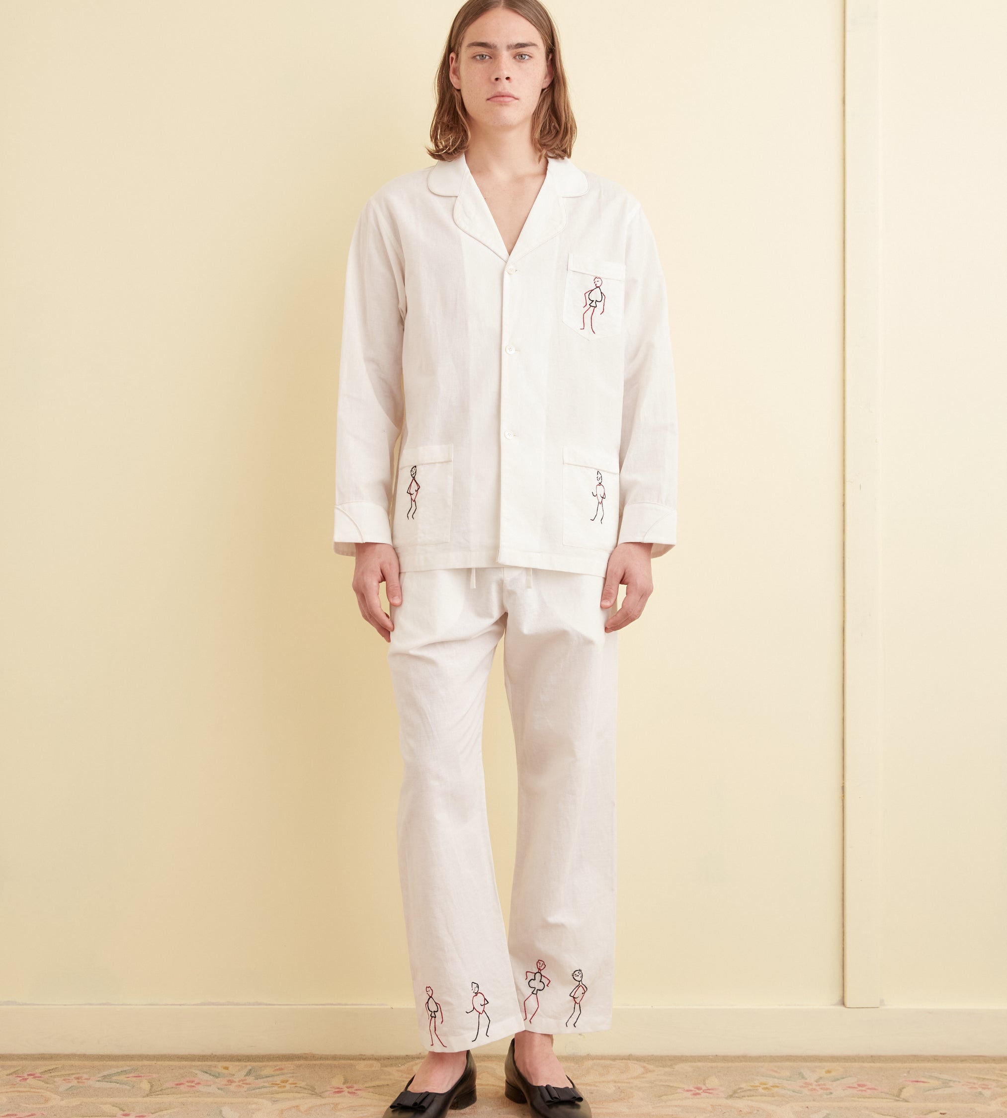 BODE Men’s Ready To Wear Embroidered Blackjack Pajama Shirt | White
