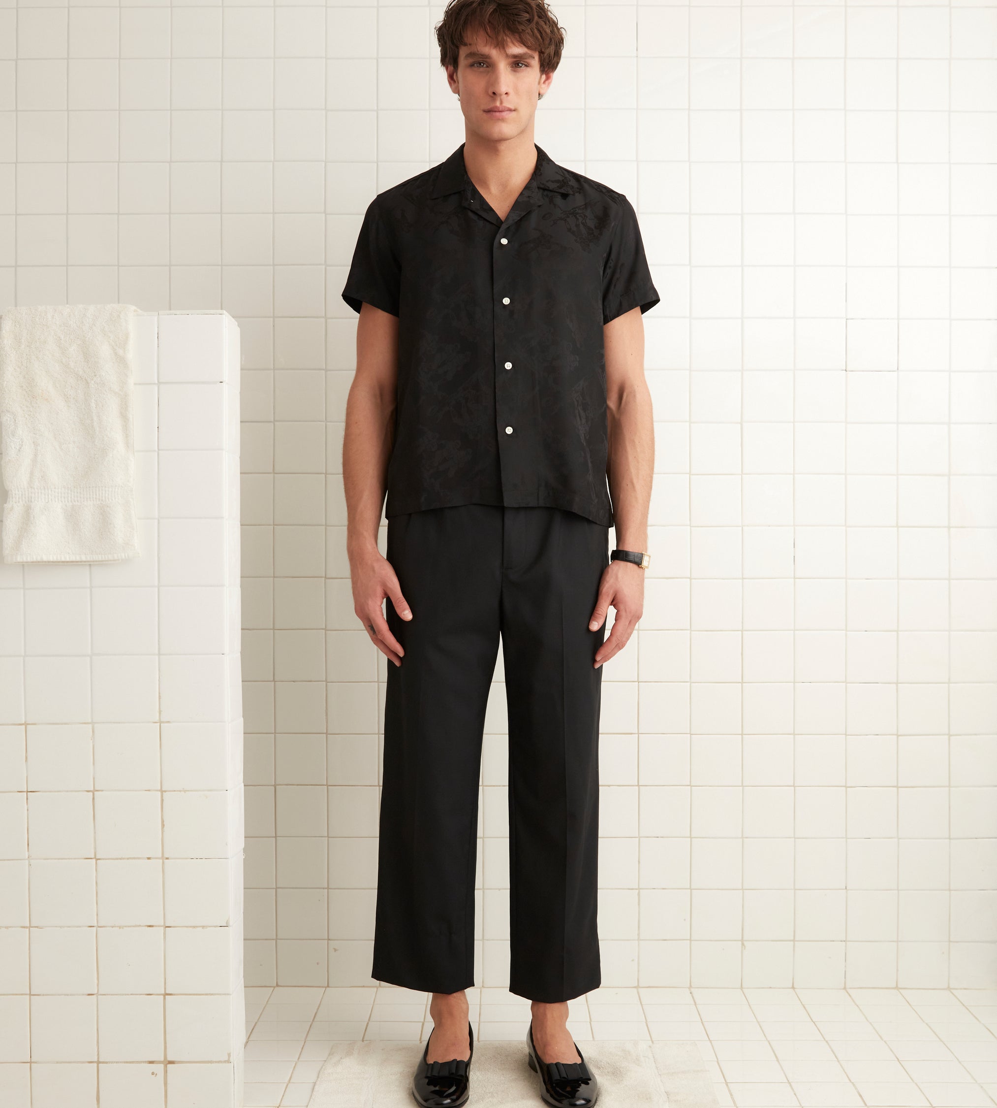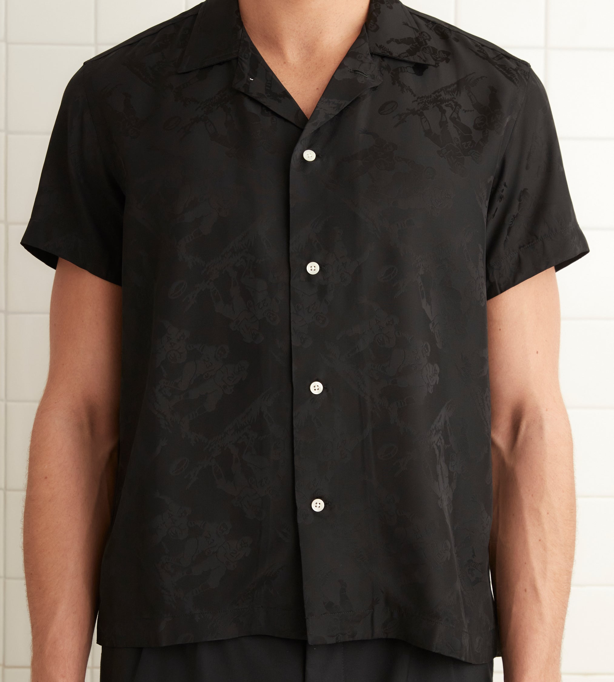 BODE Men’s Ready To Wear Football Jacquard Bowling Shirt – Black | Black