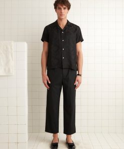 BODE Men’s Ready To Wear Football Jacquard Bowling Shirt – Black | Black