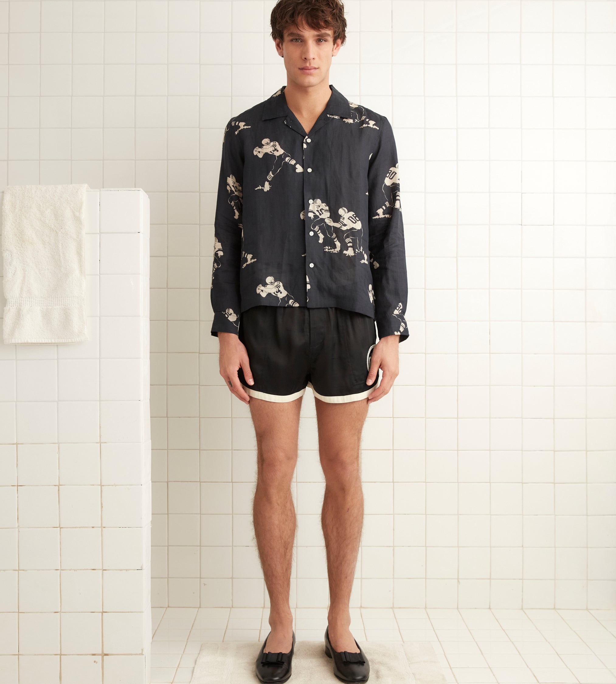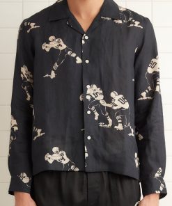 This shirt is inspired by a scrap of fabric from the 1930s. We recreated the pattern with images of football players for this style.