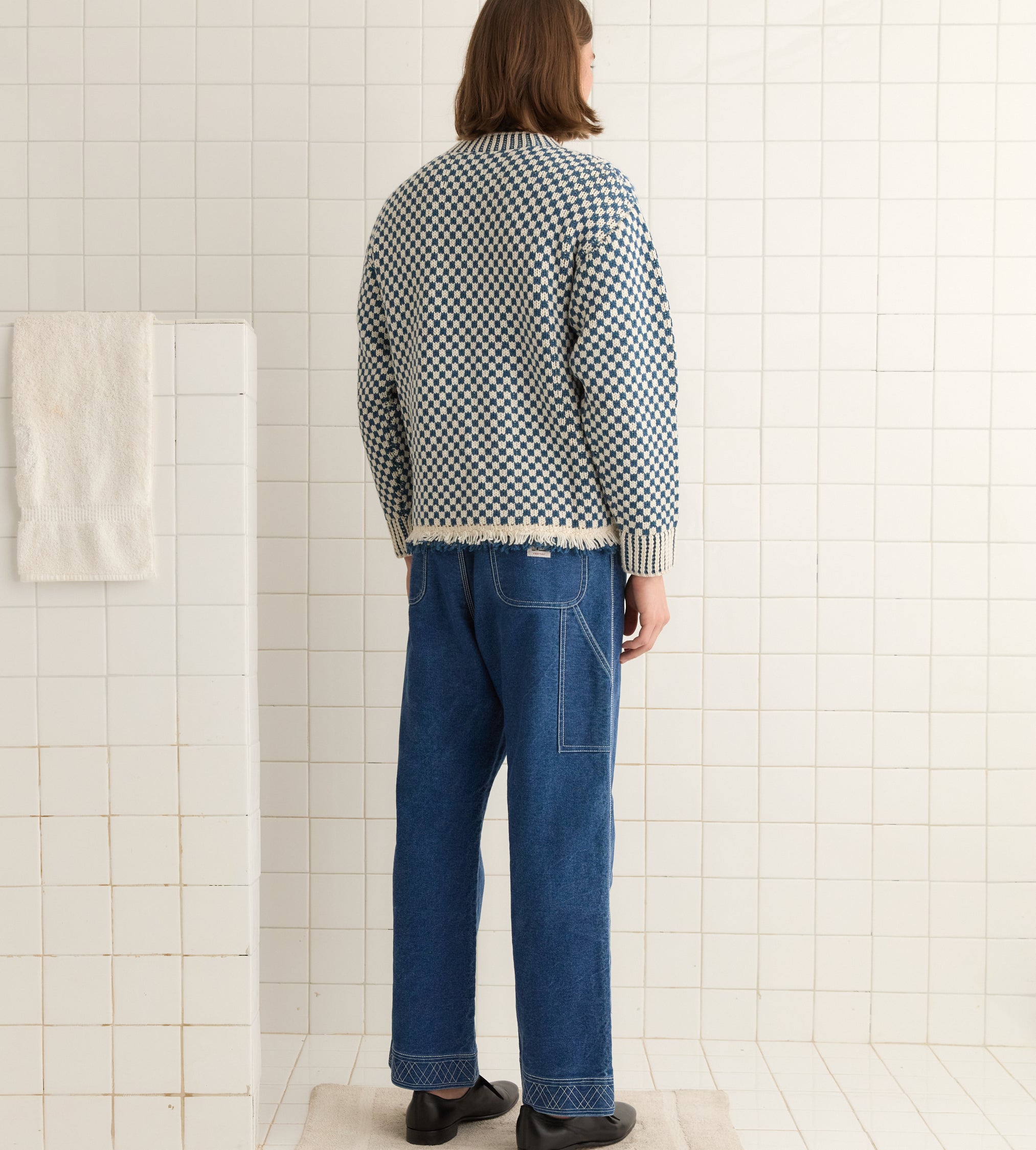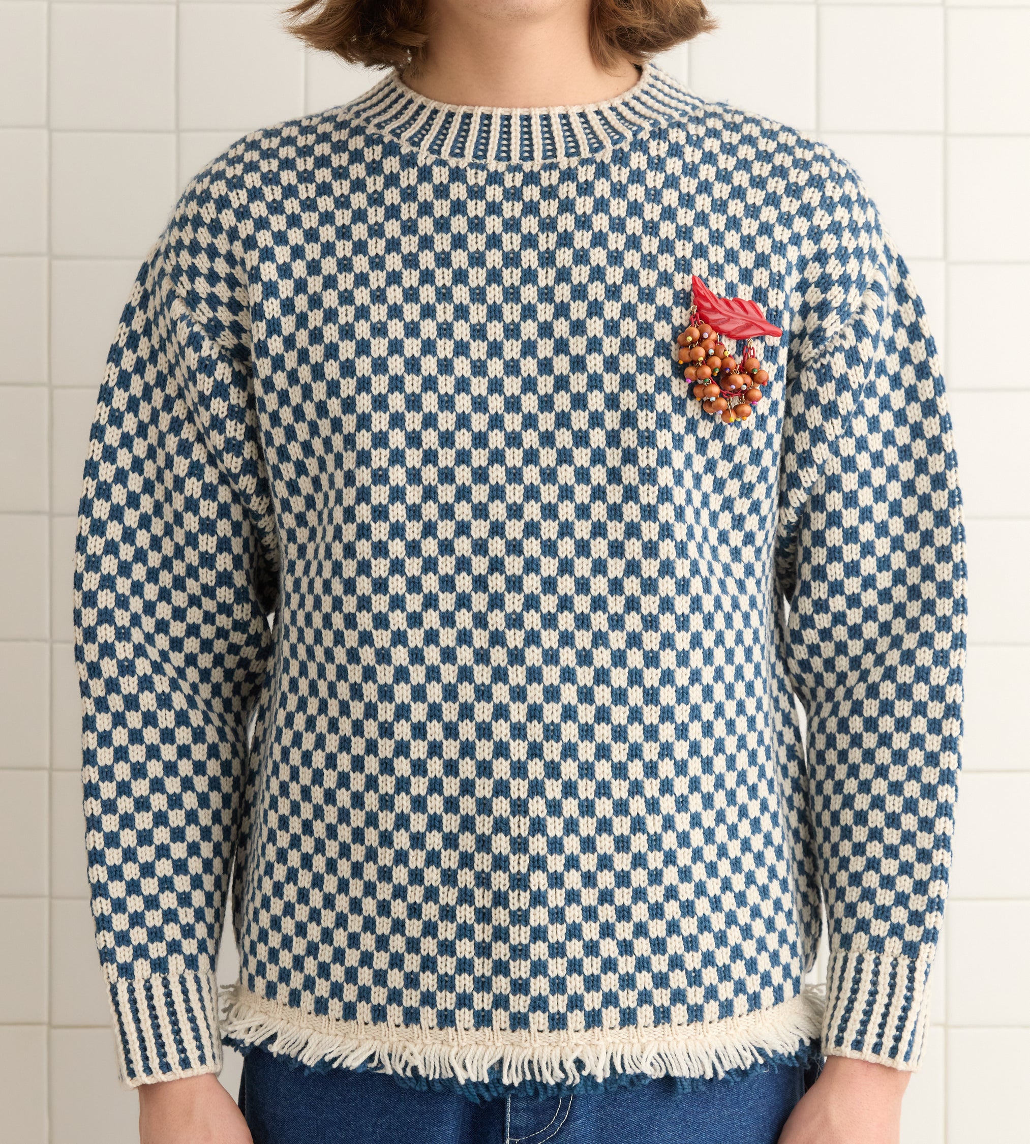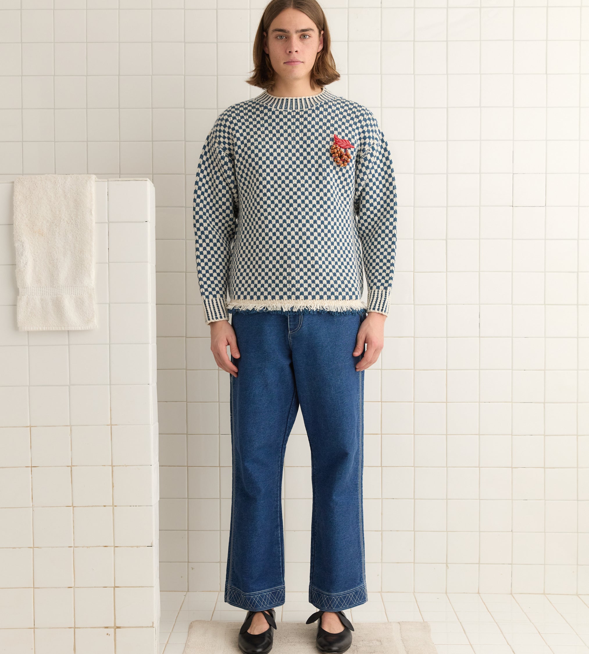 BODE Men’s Ready To Wear Fringe Check Pullover – Blue