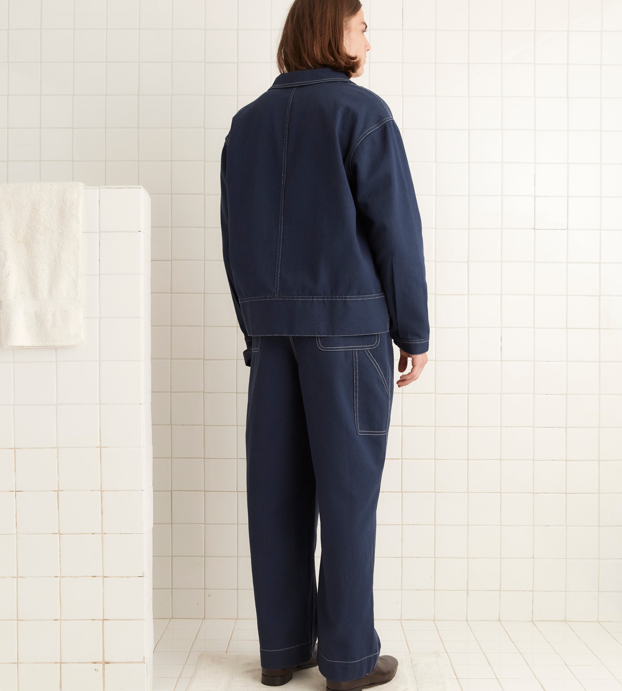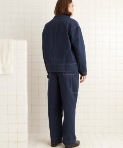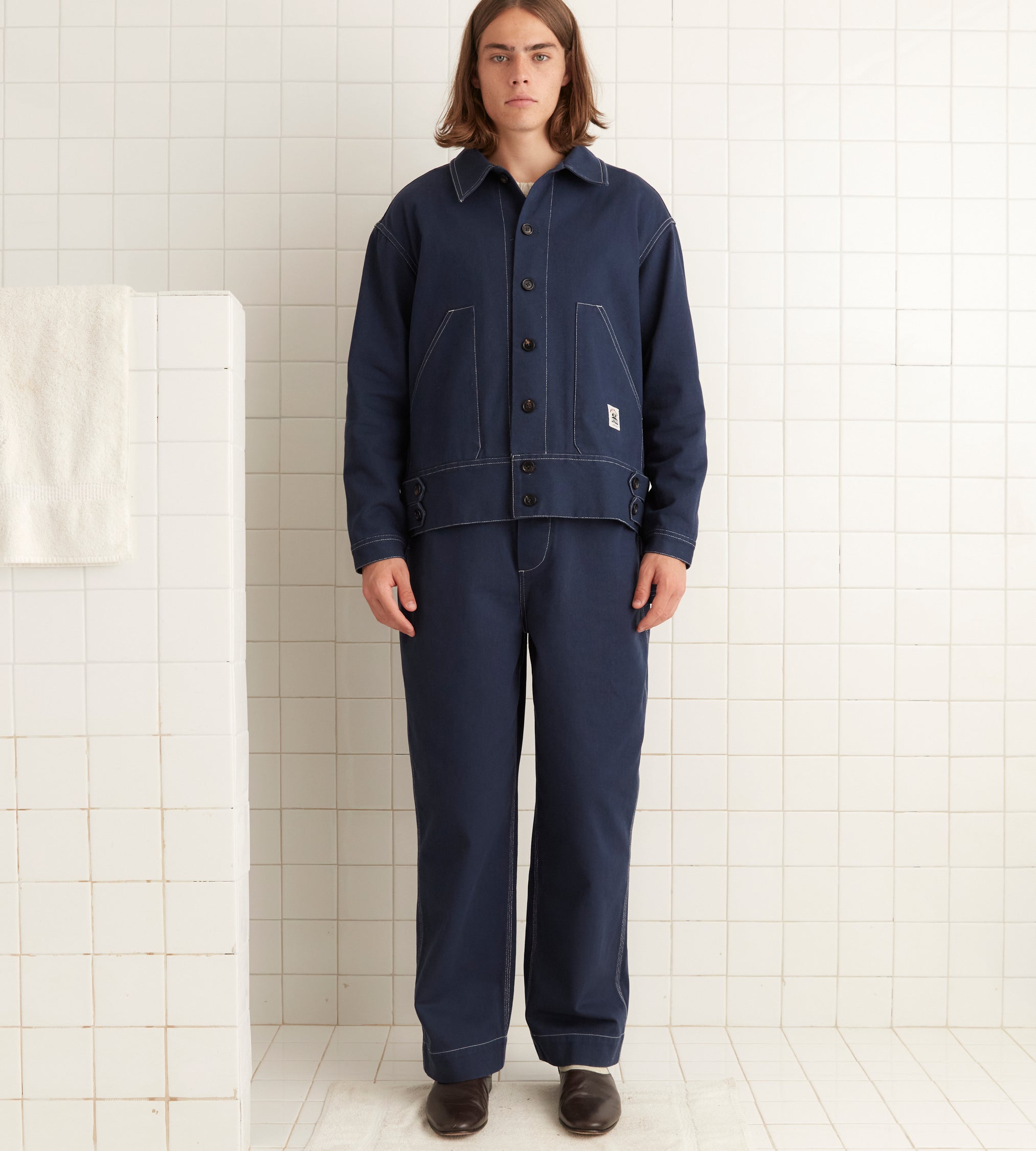 This jacket is inspired by a workwear jacket from the 1960s. We reproduced the silhouette for this style. The jacket features “Knolly Brook, a Bode Product” tags inspired by classic workwear labels.