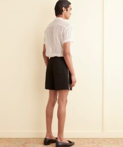 These shorts are inspired by machine lace from the 20th century, which we reproduced for this style. The lace is hand-stitched down the side seam. The shorts have a classic rugby silhouette, with a short inseam and a wide leg opening.