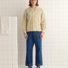 This shirt is inspired by a scrap of fabric from the 1940s-1950s, printed with a basketball player pattern. We reproduced the fabric for this style.