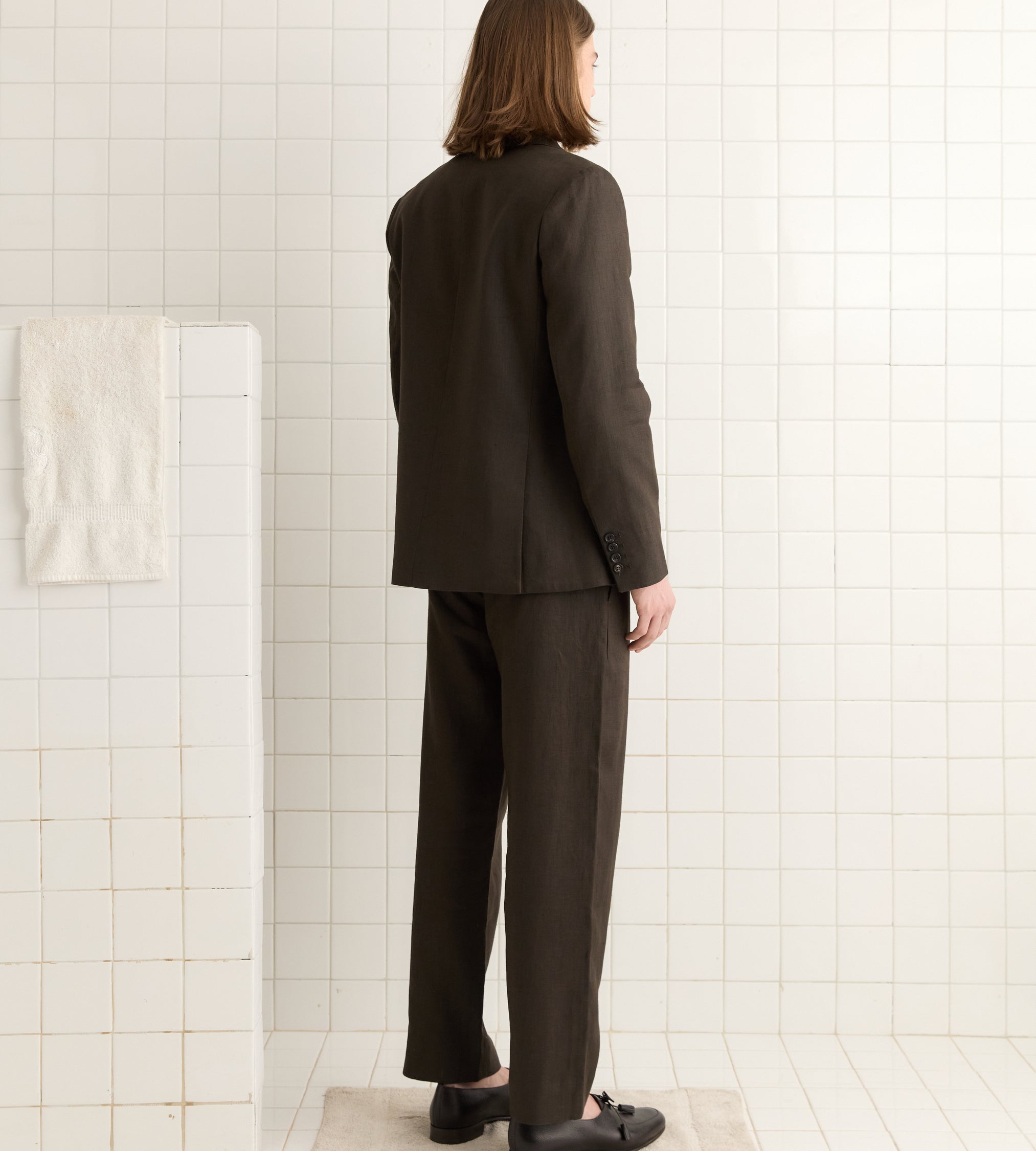 BODE Men’s Ready To Wear Lightweight Linen Double-breasted Suit Jacket – Brown/black | Brown & Black