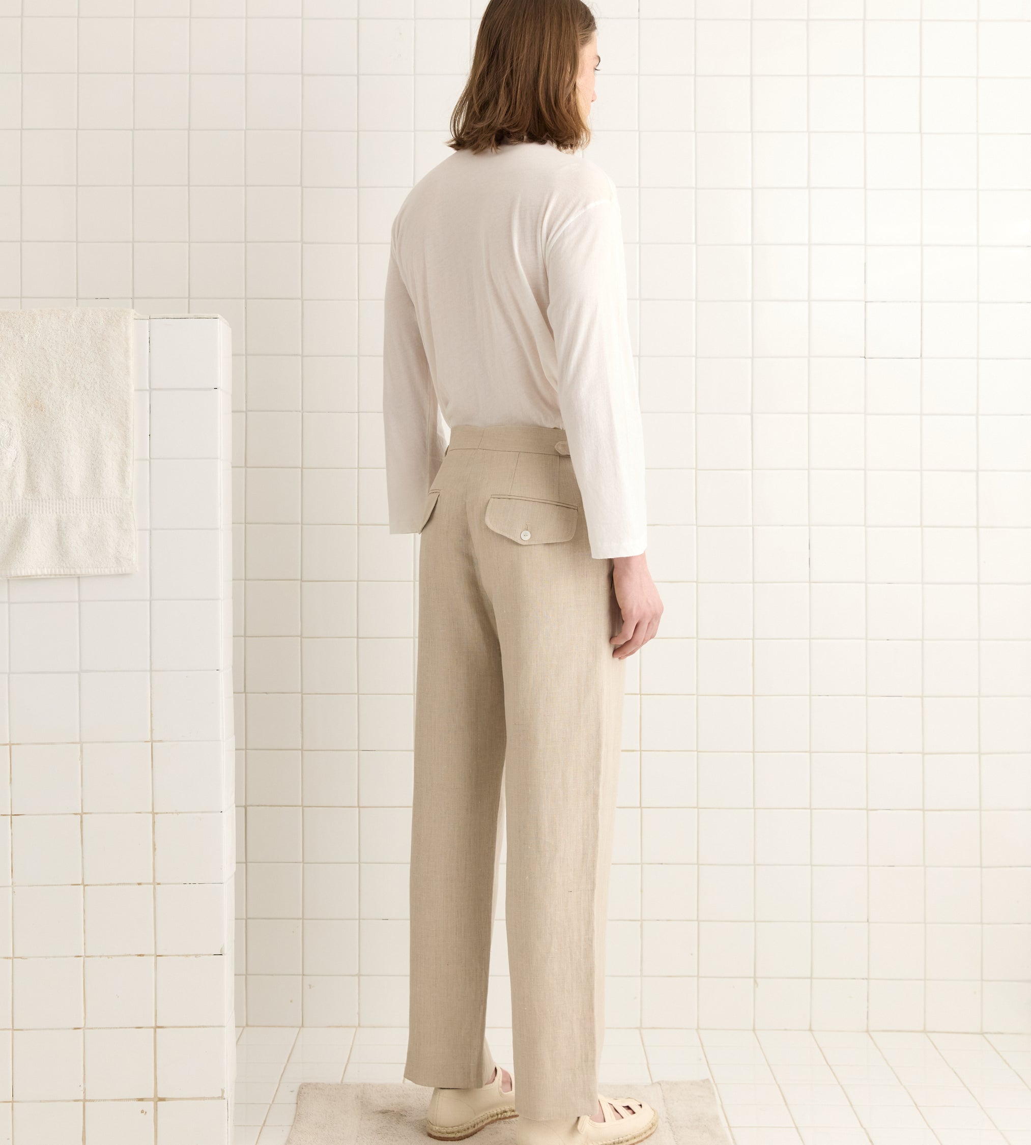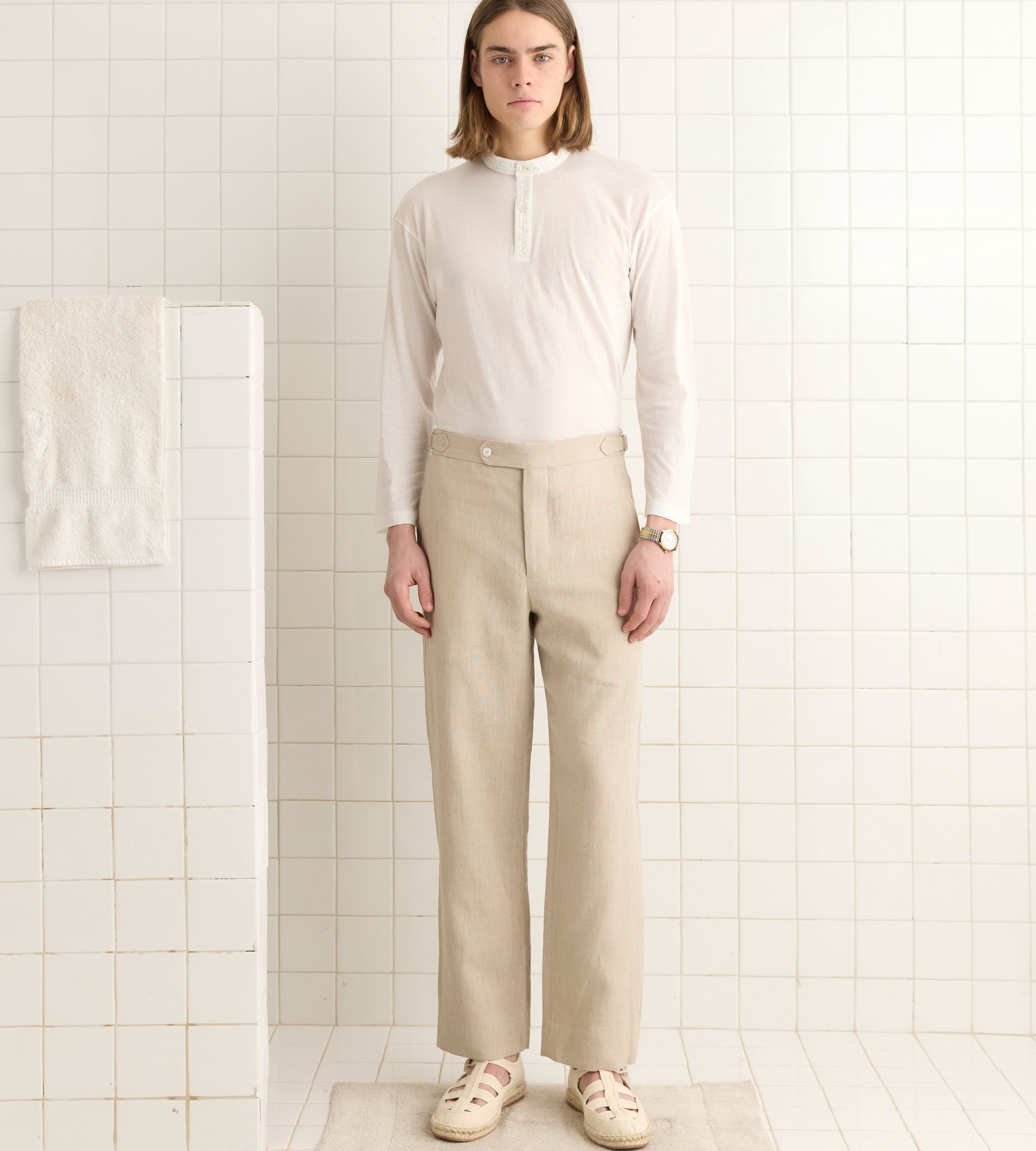 BODE Men’s Ready To Wear Lightweight Linen Side-buckle Trousers – Wheat | Wheat