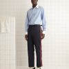 These trousers are inspired by men’s suiting from the 1950s-1960s. They are cut according to a traditional silhouette—mid-rise, straight leg—and can be worn alone or with the matching suit jacket.