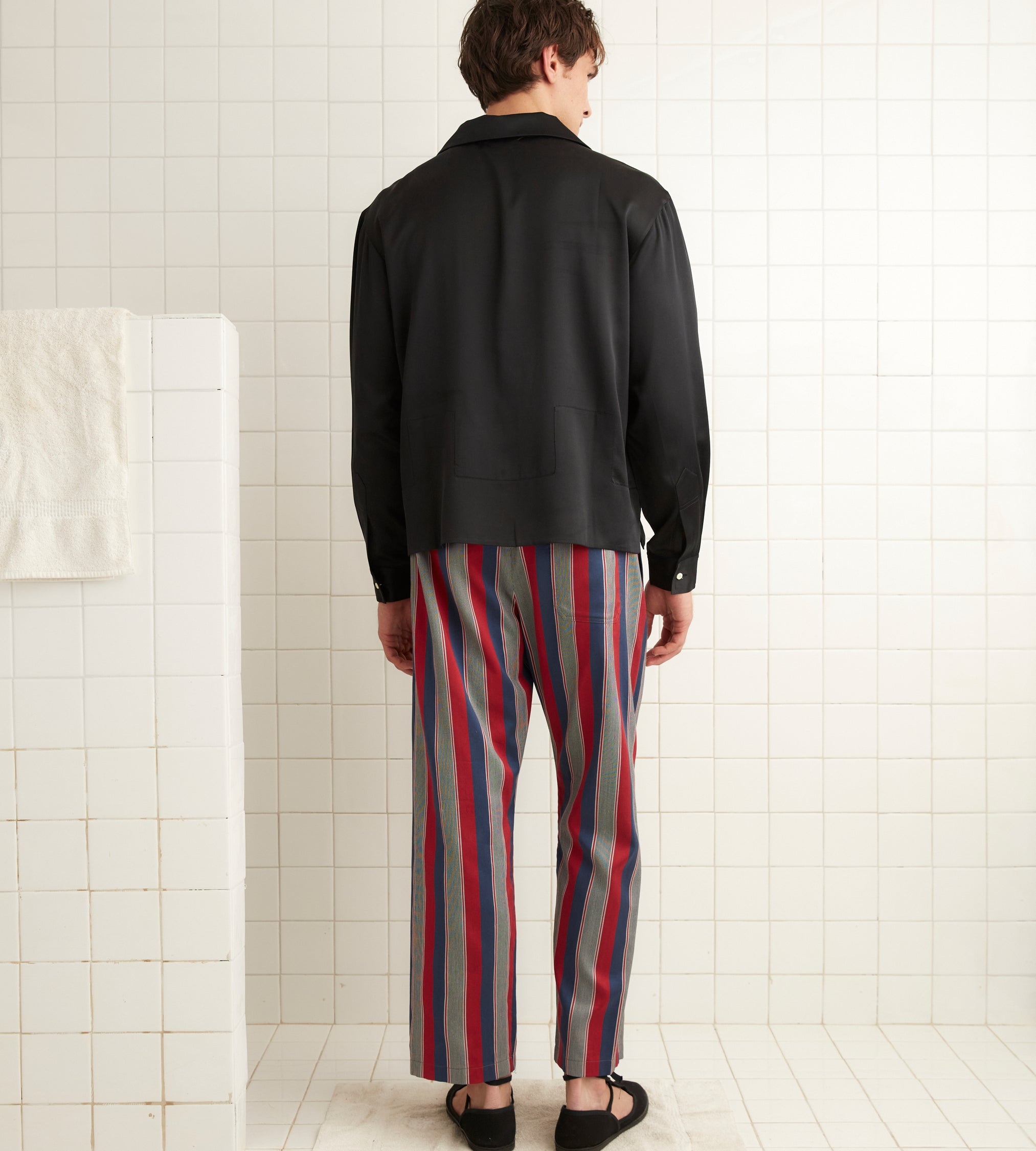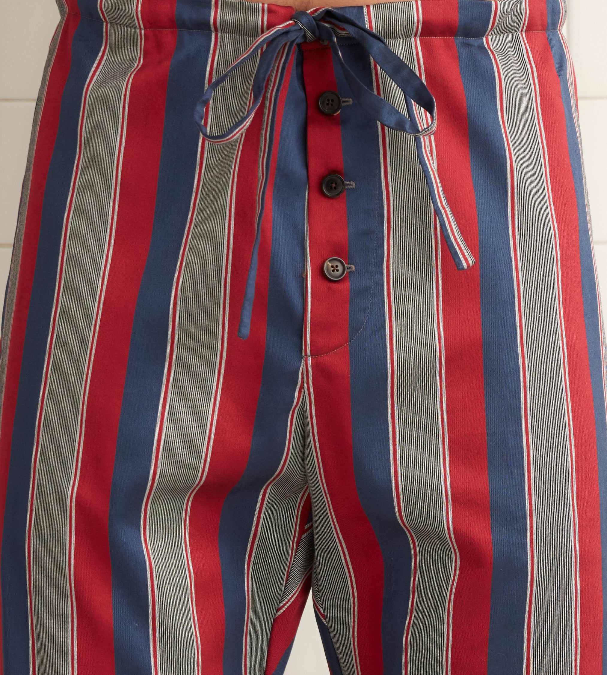 These pajama pants are inspired by 1960s necktie yardage. We reproduced the fabric for this style, which is cut according to a classic pajama silhouette.