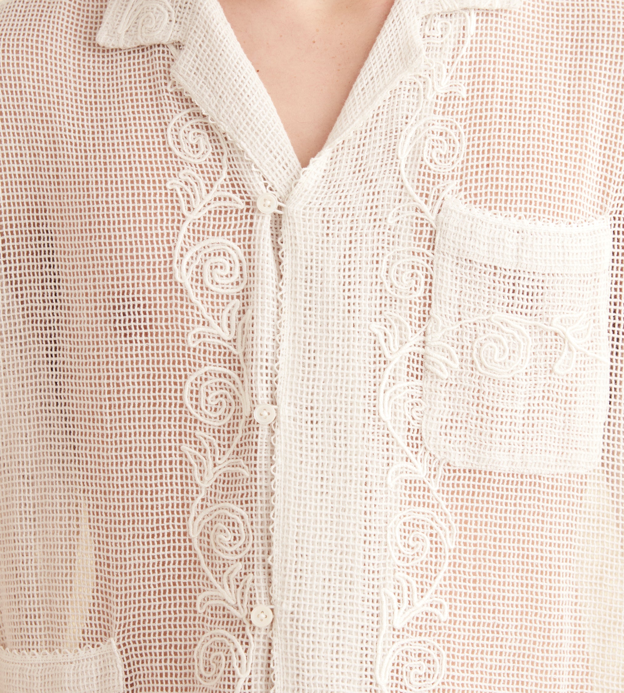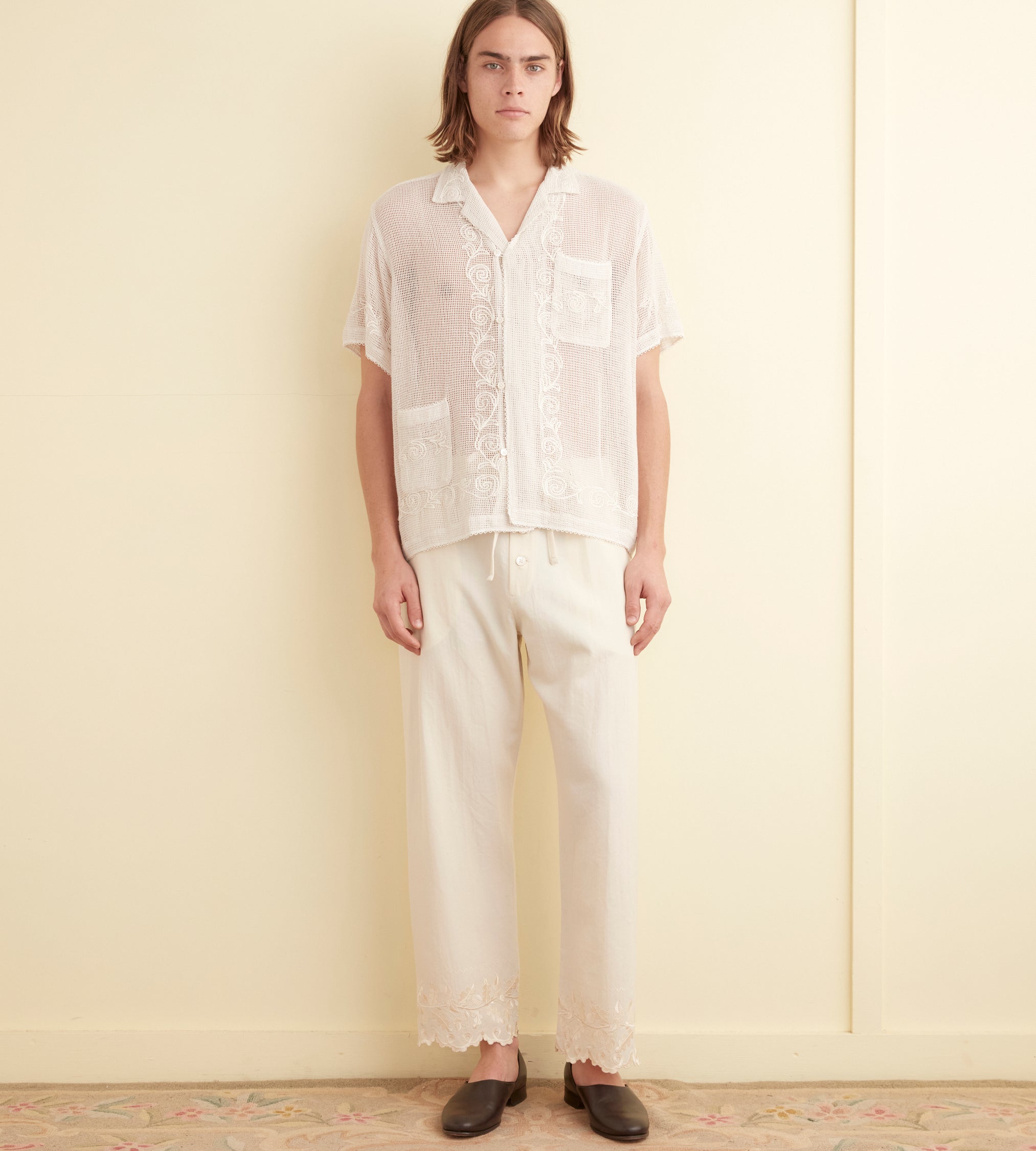 BODE Men’s Ready To Wear Mesh Filigree Short Sleeve Shirt