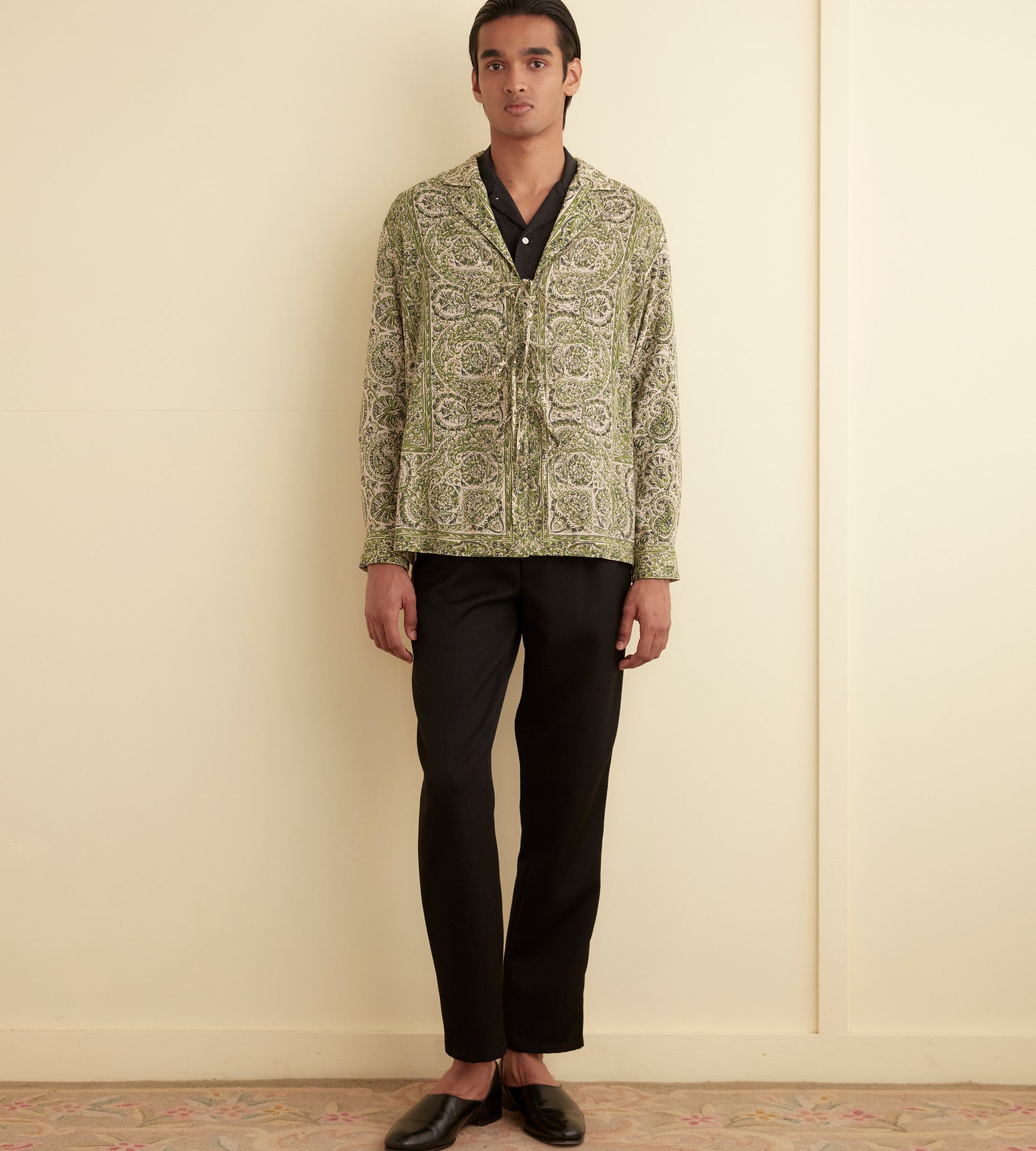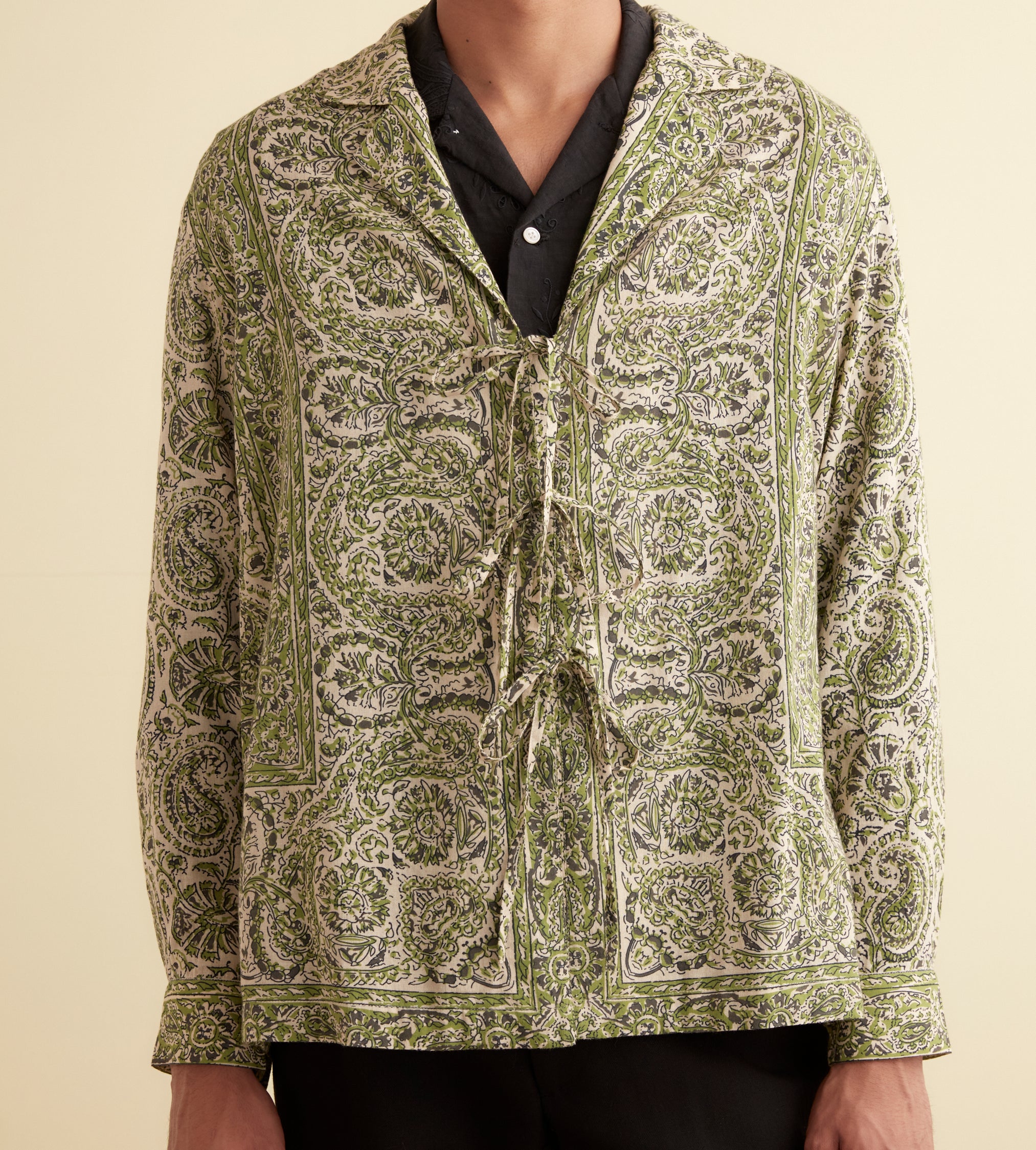 BODE Men’s Ready To Wear Paisley Tie Long Sleeve Shirt | Green
