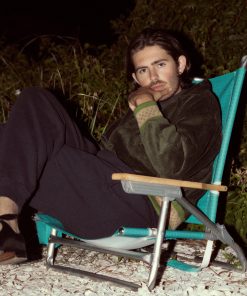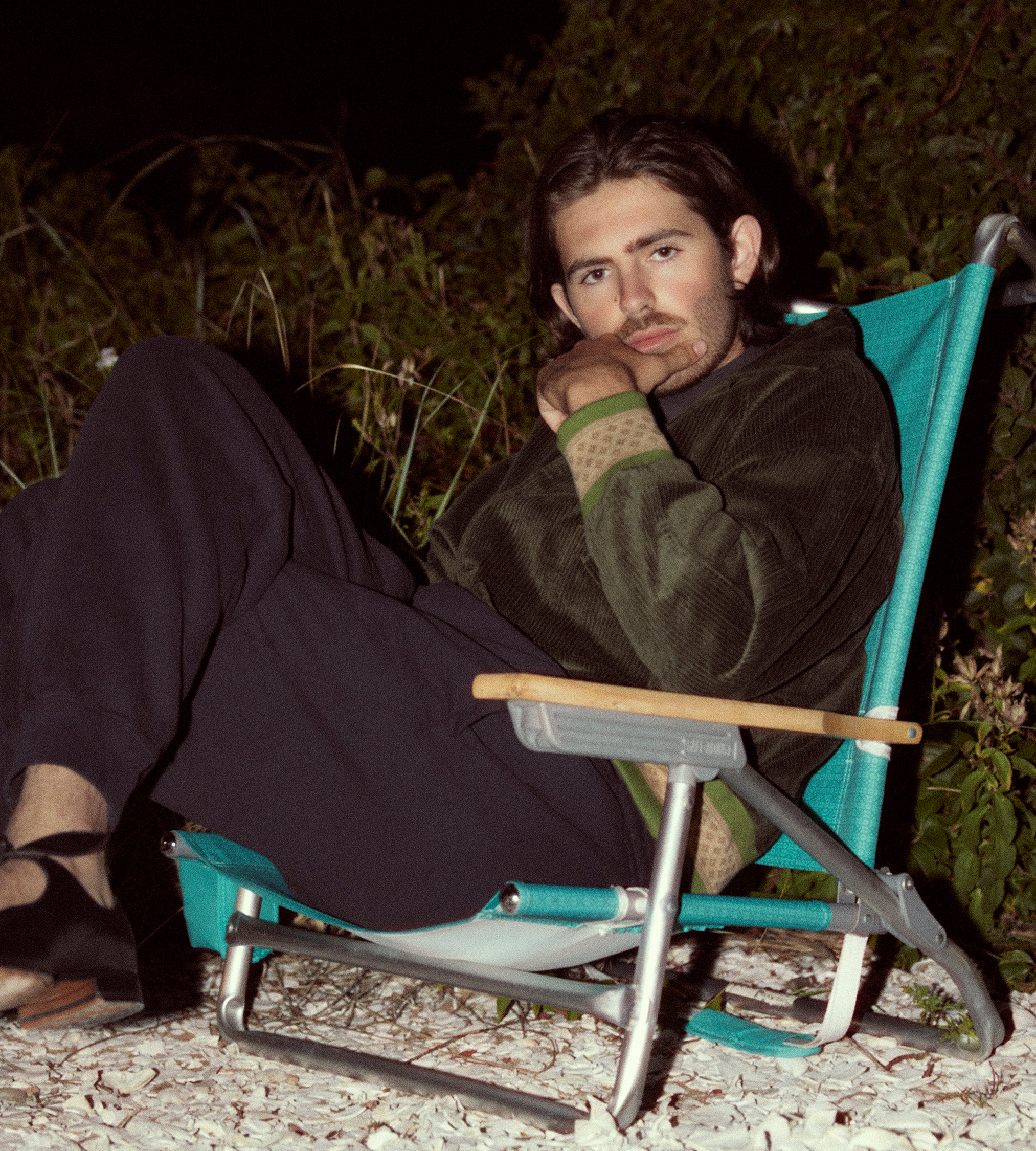 This jacket is inspired by a workwear jacket from the 1960s. We reproduced the silhouette in forest green corduroy, trimmed with patterned knit bands at the hem and cuffs.