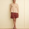 These shorts are inspired by an unfinished quilt from the early 20th century. We reproduced the quilt block, with its sawtooth triangles, for this style. The shorts are cut in a traditional rugby silhouette, with a short inseam and a wide leg opening.