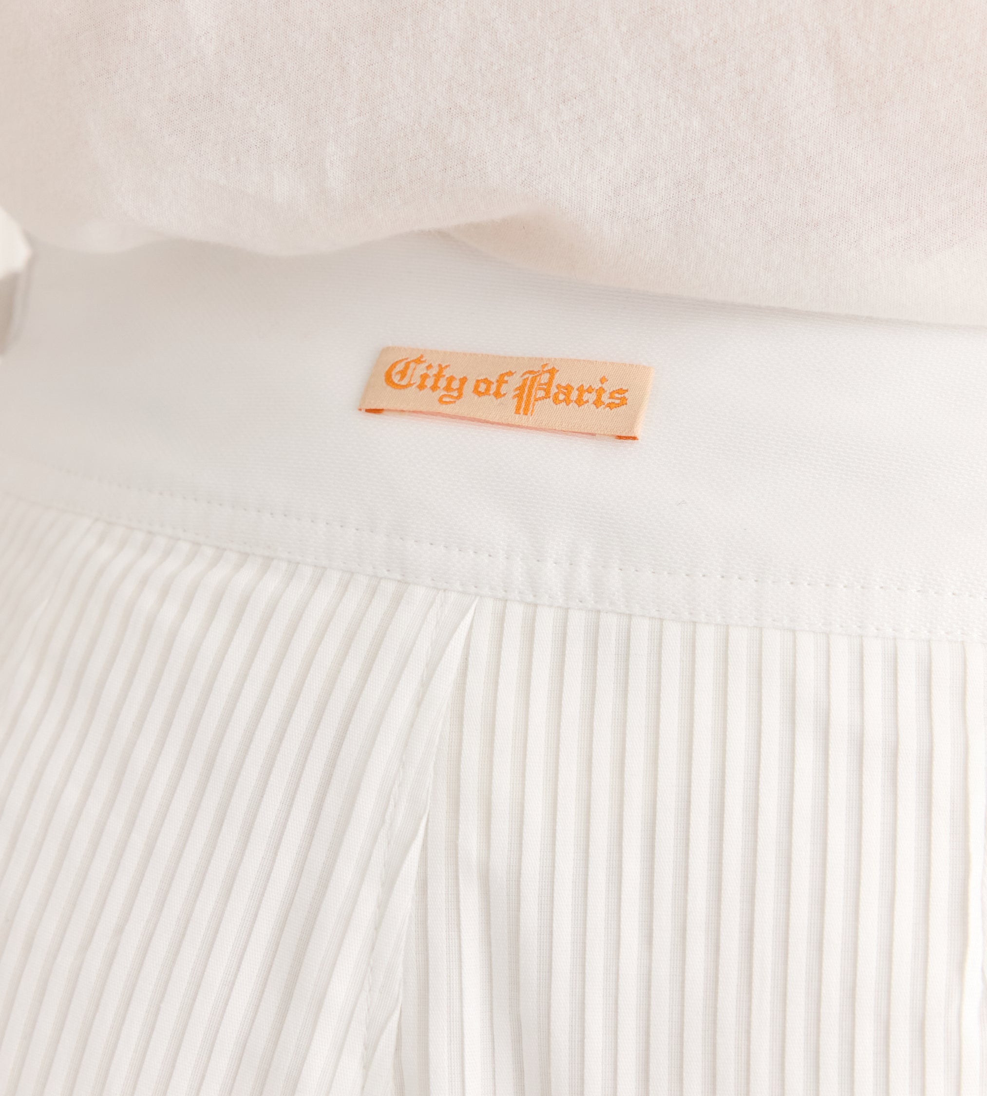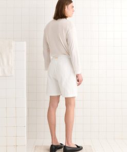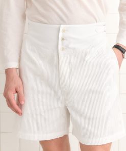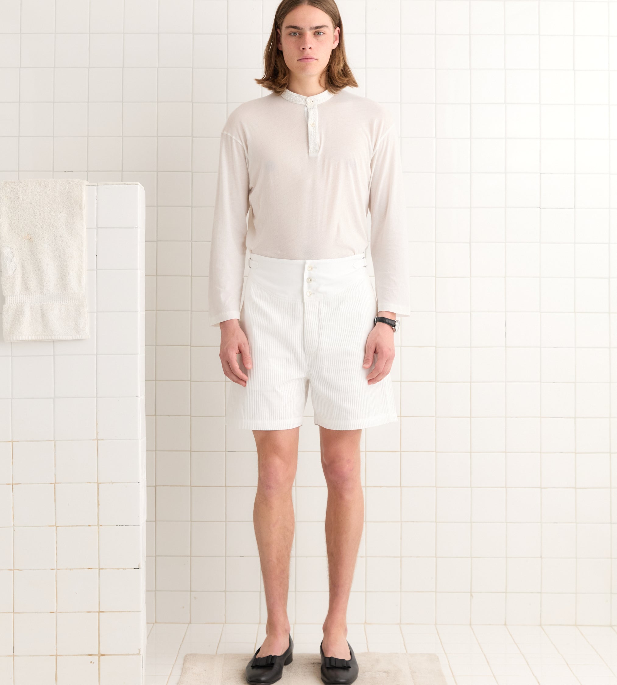 These shorts are inspired by a pair of Army-issue boxer shorts from 1943. We reproduced the silhouette, with its wide waistband and front buttons, in piqué and plissé cotton.