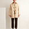This coat is a historical reproduction of a shearling and suede ranch coat from the 1950s. It is reversible and can be worn either with the shearling or the suede facing out.