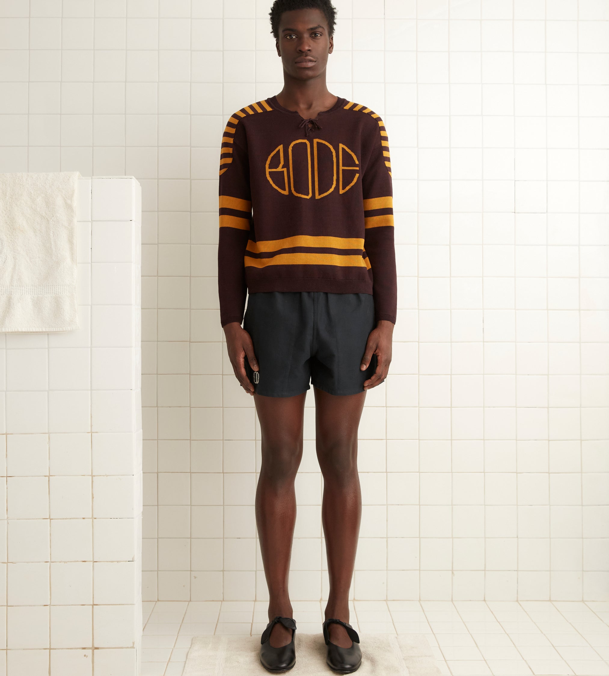 BODE Men’s Ready To Wear Rink Sweater – Brown/yellow | Brown & Yellow
