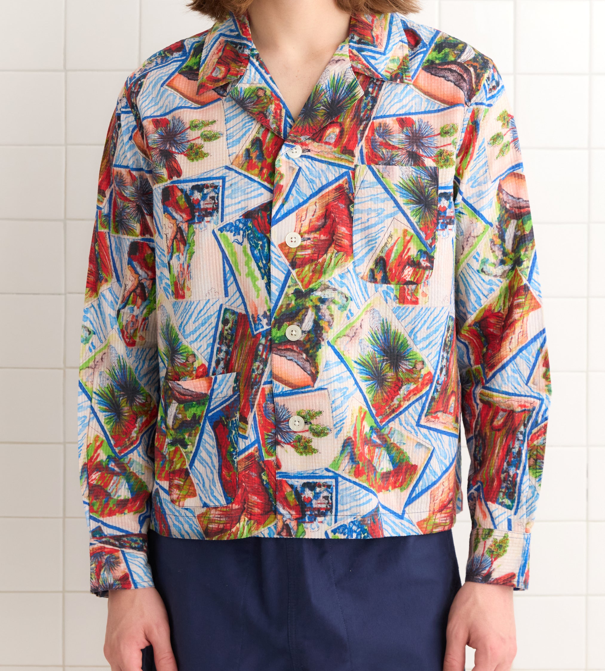BODE Men’s Ready To Wear Seersucker Postcard Long Sleeve Shirt