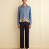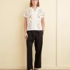 This shirt is inspired by a handkerchief from the 1940s, which was patterned with crests. We reproduced the pattern for this style with illustrations of skiing destinations.