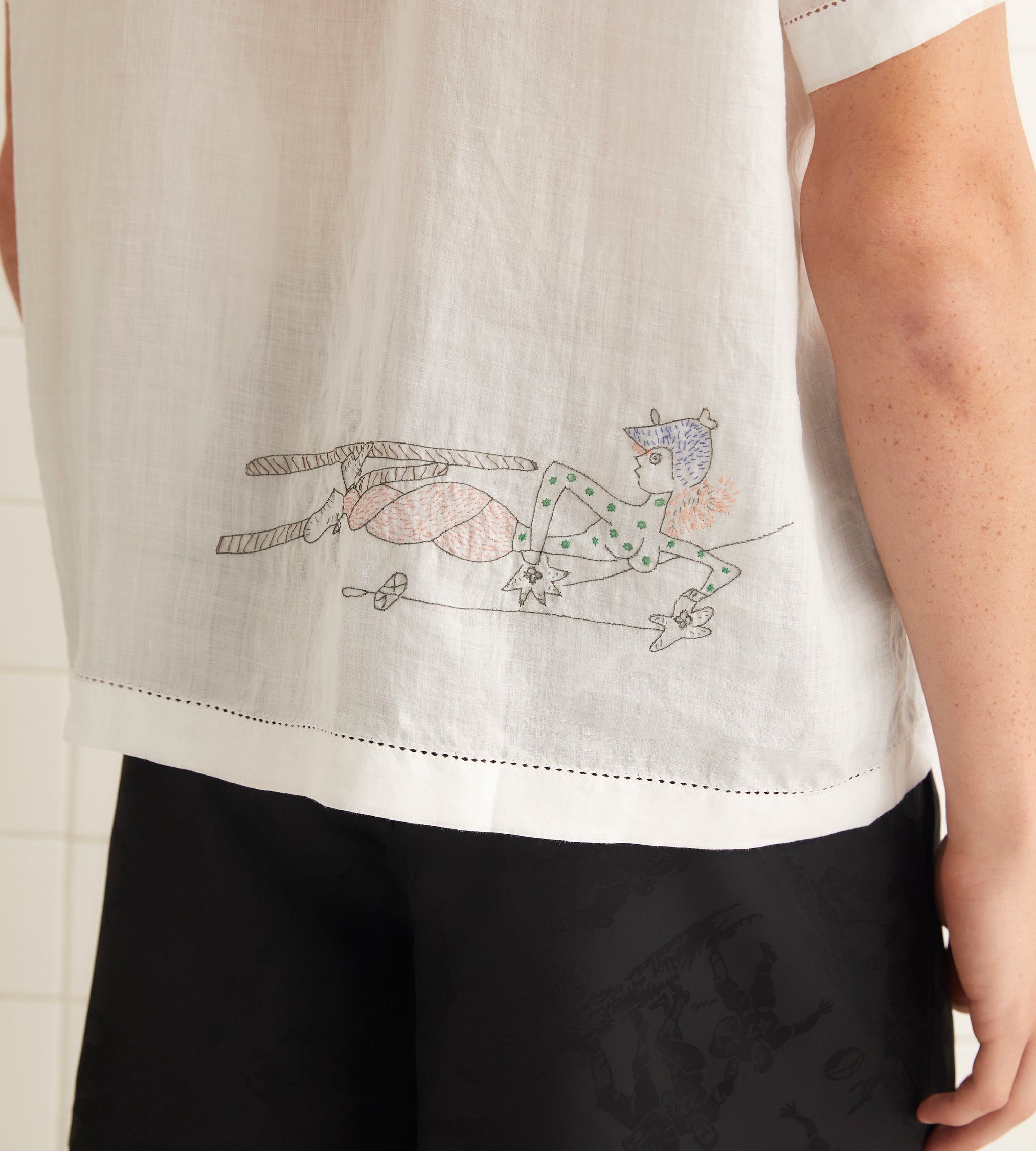 BODE Men’s Ready To Wear Skiers Short Sleeve Shirt | White