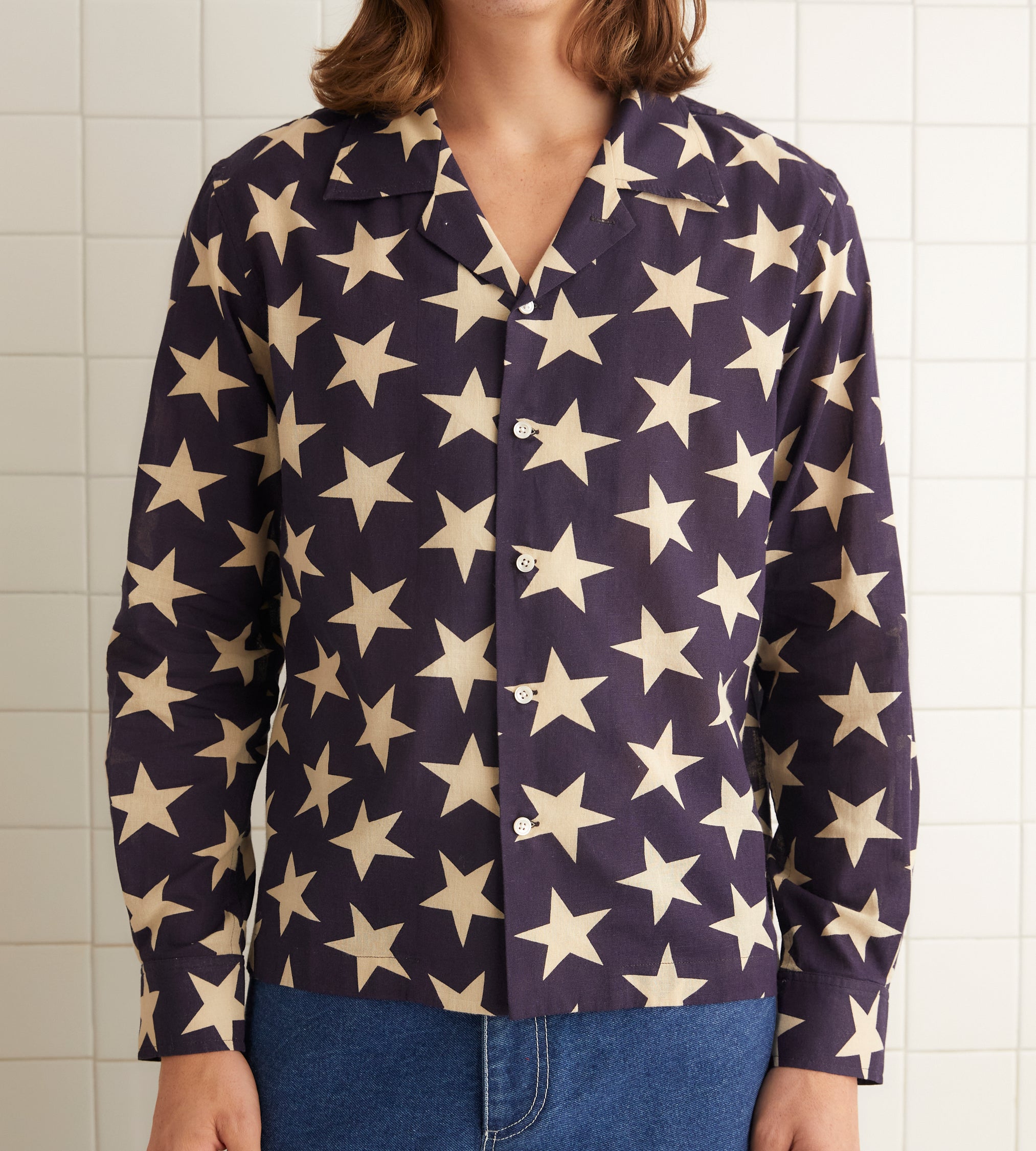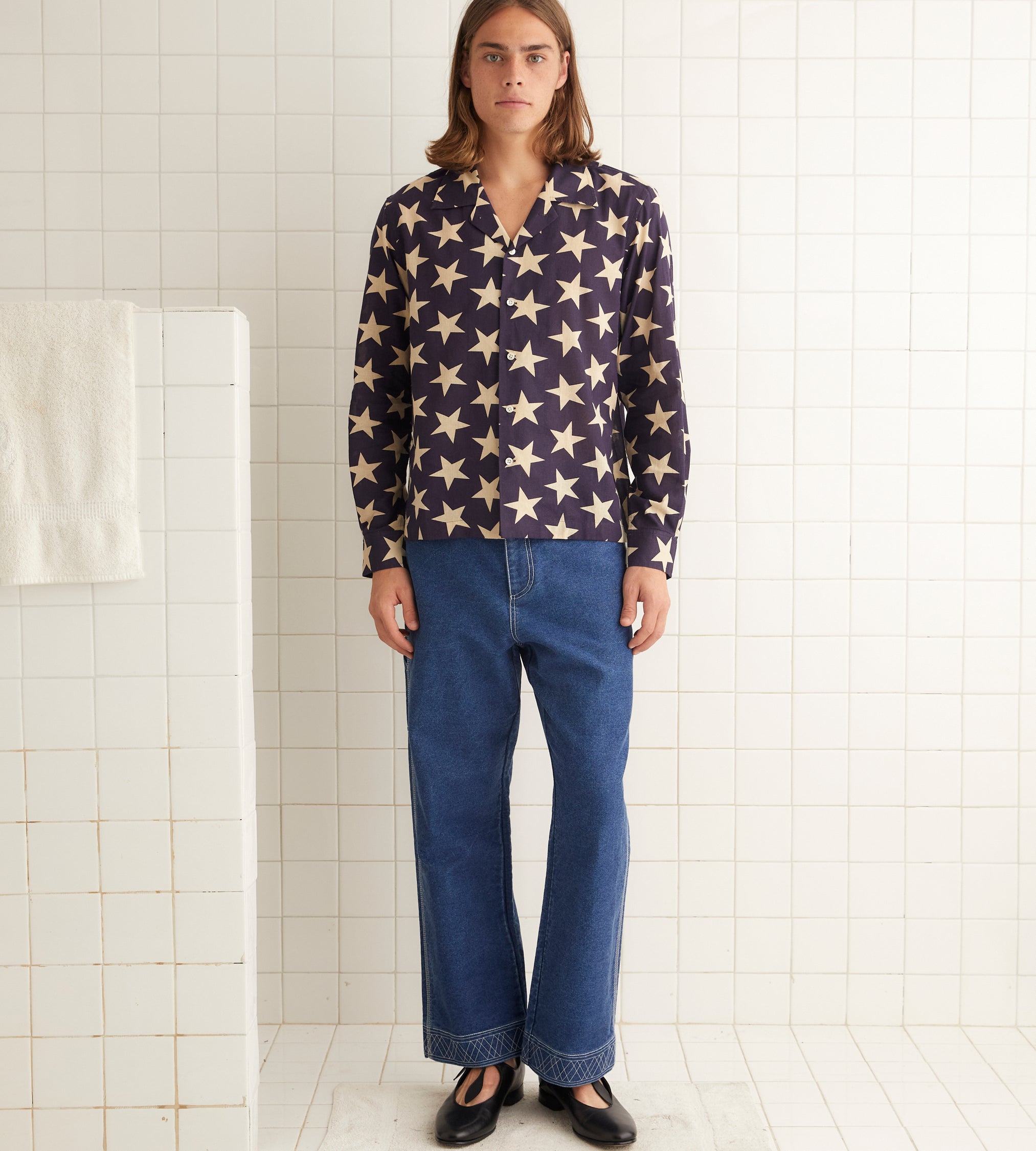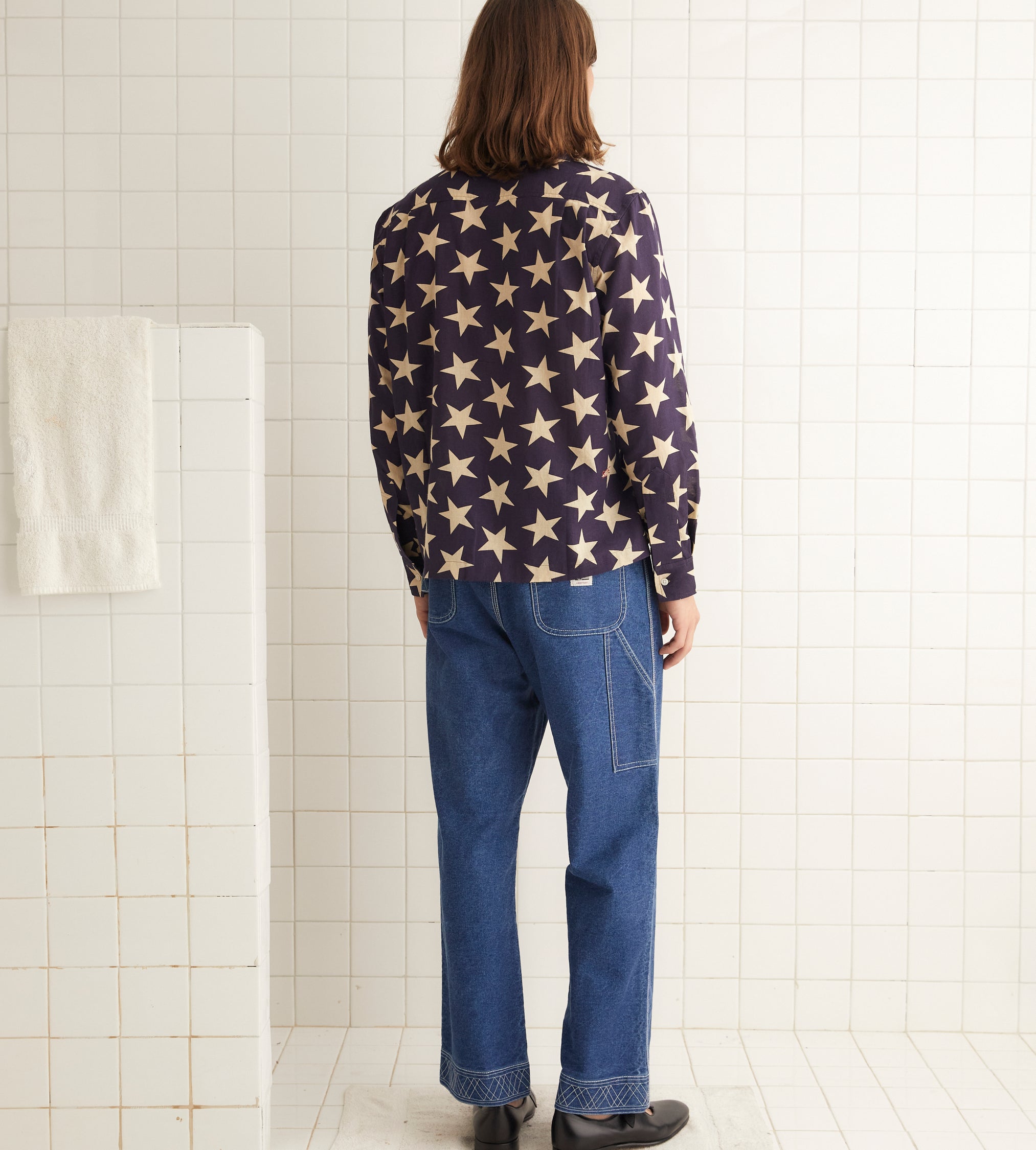 BODE Men’s Ready To Wear Starry Long Sleeve Shirt | Navy