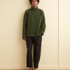 This scarf is inspired by a novelty sweater from the 1970s, likely something made from a DIY knitting kit. We reproduced the intarsia flag pattern for this style, which is trimmed with pompoms at each end.