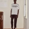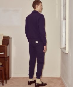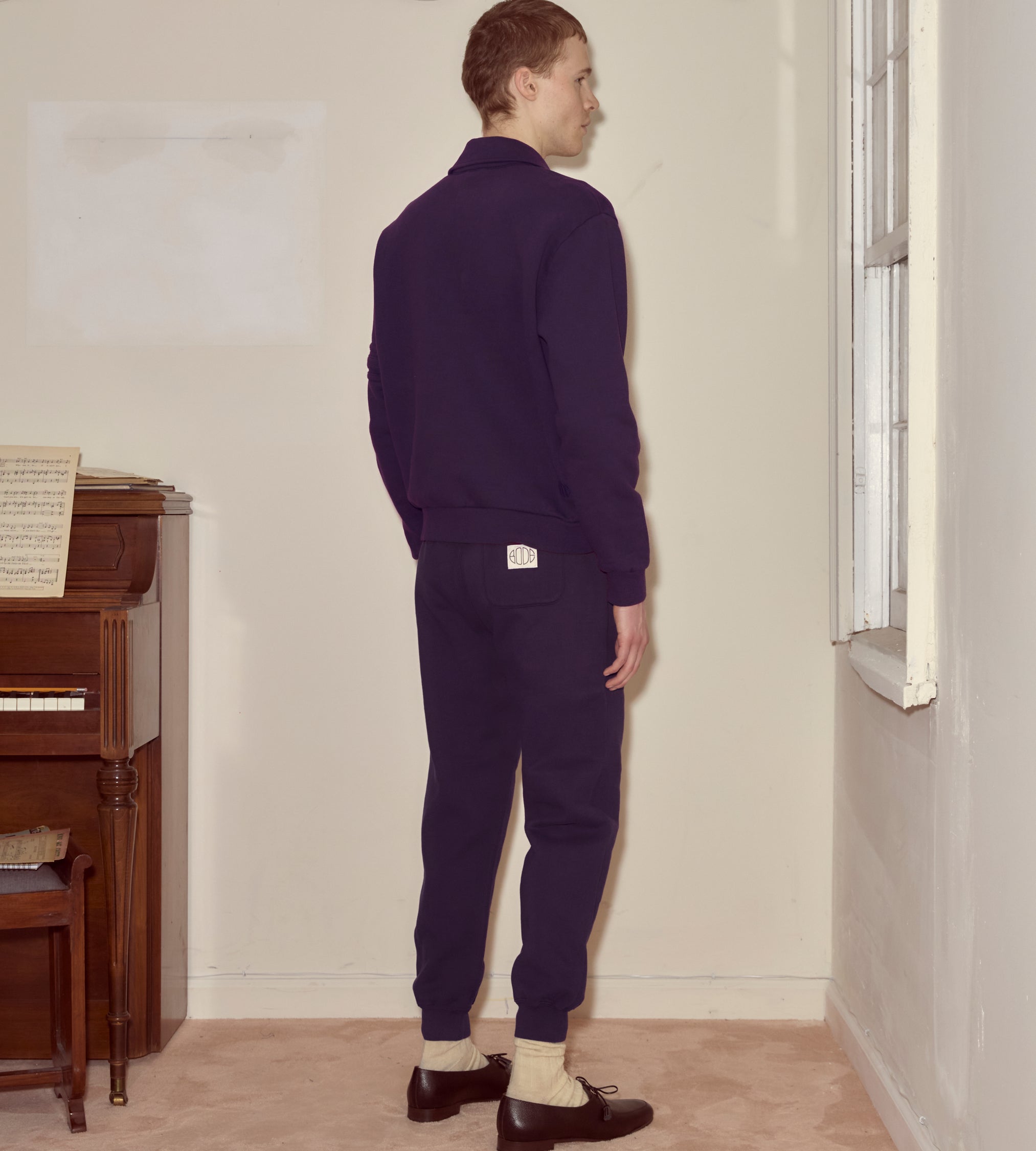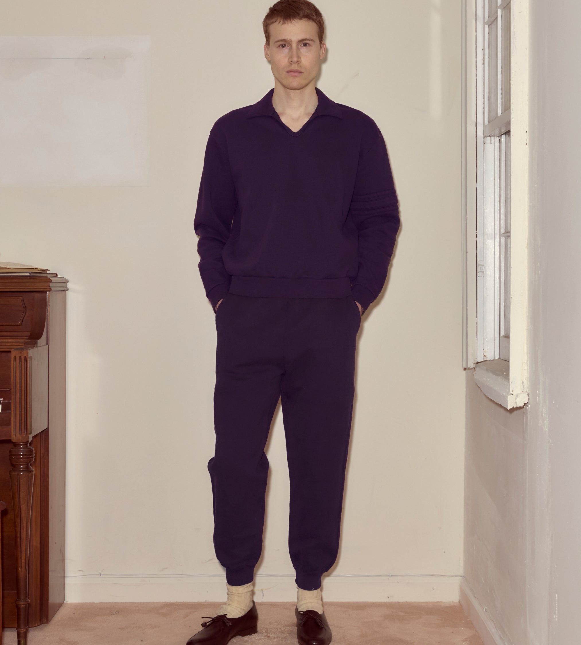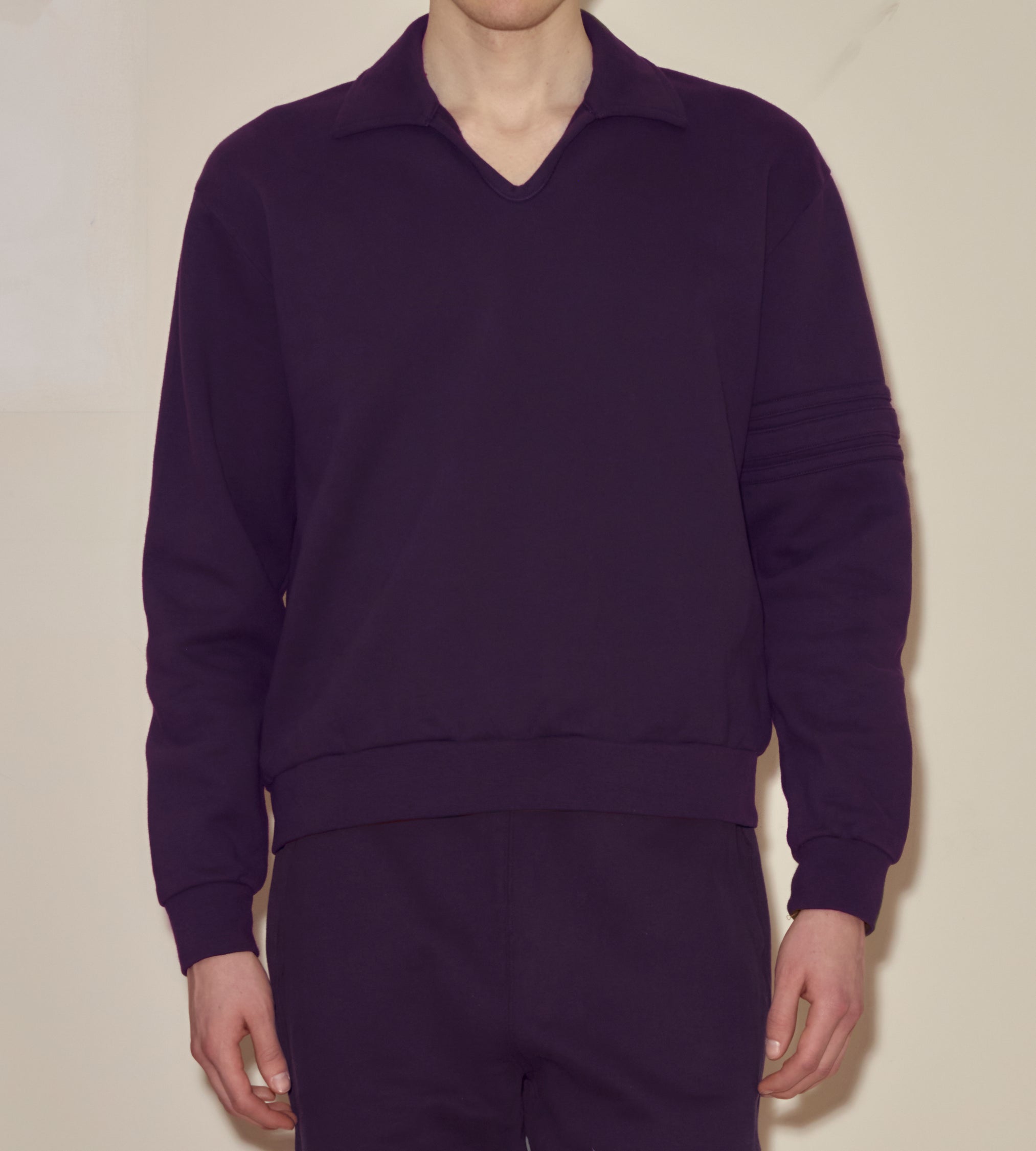 This pullover is made from midweight cotton fleece. It features a tonal double-stripe appliqué around one arm.