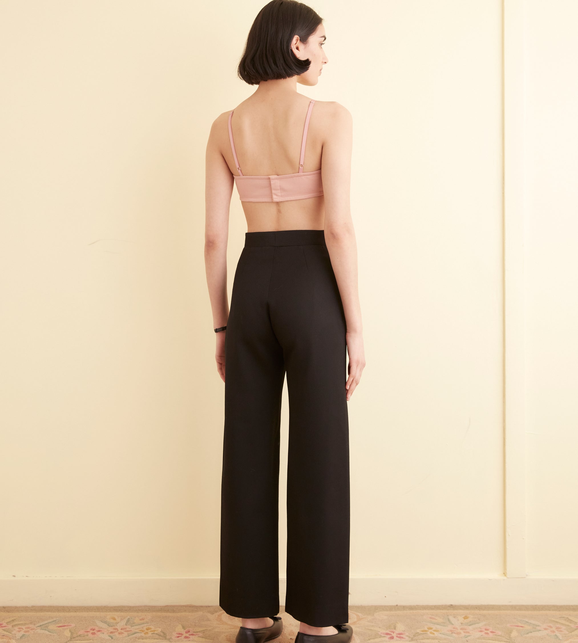This bra is inspired by a 1930s bralette. We reproduced the silhouette for this style, which has been appliquéd with leaves and flowers made of silk ribbon.