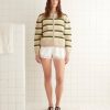This style is inspired by a vintage French cardigan, sourced in Paris. We reproduced the silhouette, with its pointed collar and its tie-neck detail, in cashmere. The cardigan is trimmed with droplet beads.