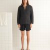 These shorts are inspired by handmade baby bloomers, c.1940s. We reproduced the embroidery, with its “Good Luck, Baby” slogan, for this style.