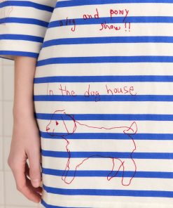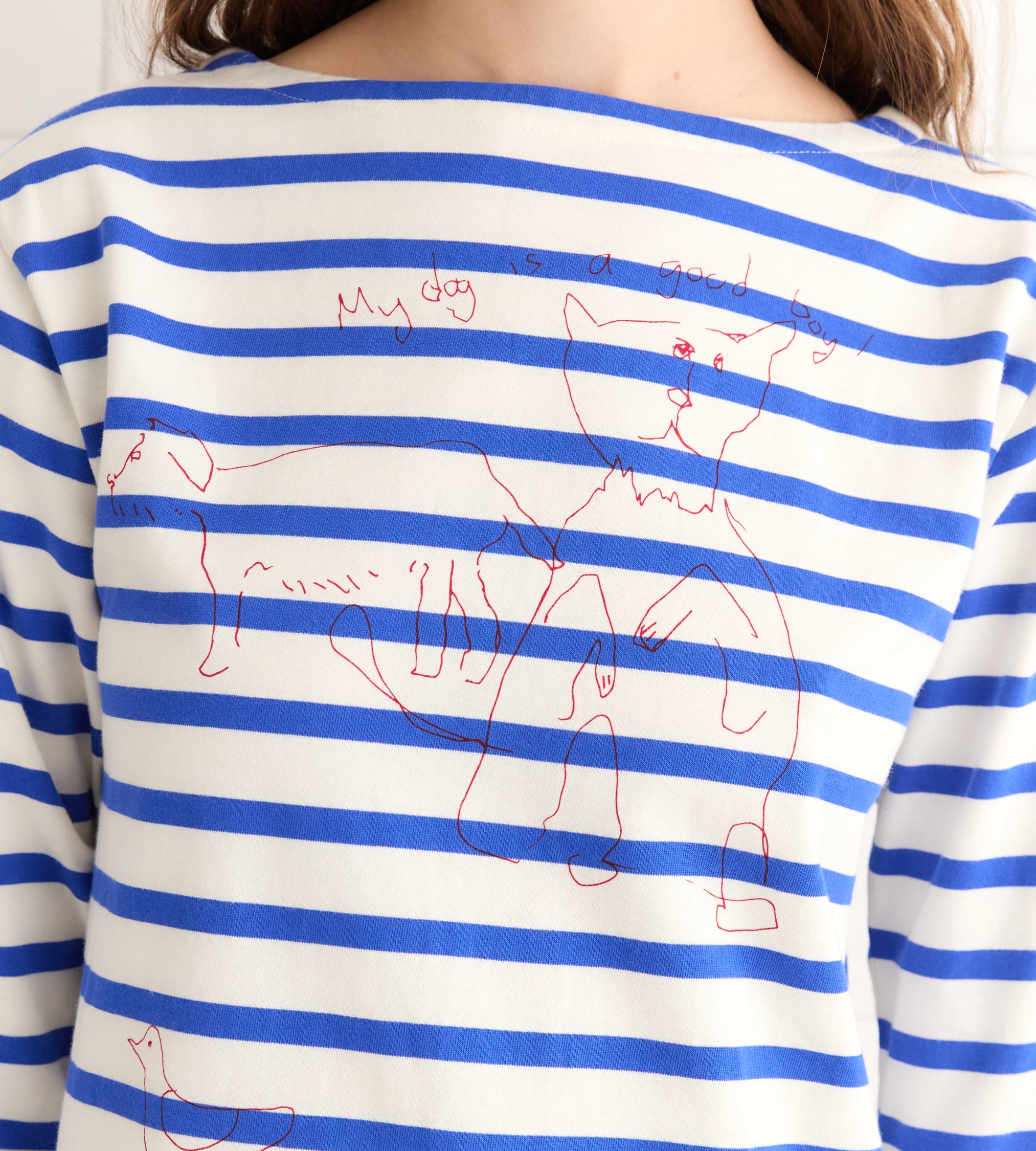 This dress is inspired by a marinière from the French Navy, dating between 1950 and 1953. The sailor who owned it had drawn illustrations all over the shirt. We reproduced the hand drawings for this style.